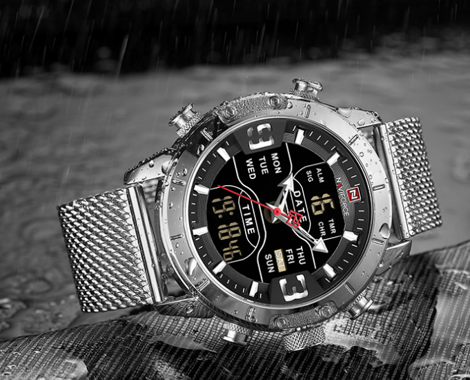 Special functions: luminous, day of the week, alarm, chronograph, calendar, 24-hour indication