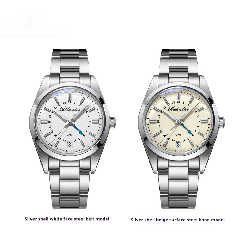 Color: Silver case with white dial and steel band; silver case with beige dial and steel band