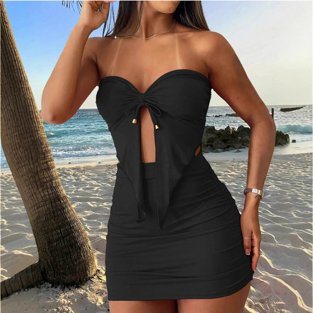 Trendy elements: Ruffles, fashionable, off-shoulder, open-back, midriff-baring