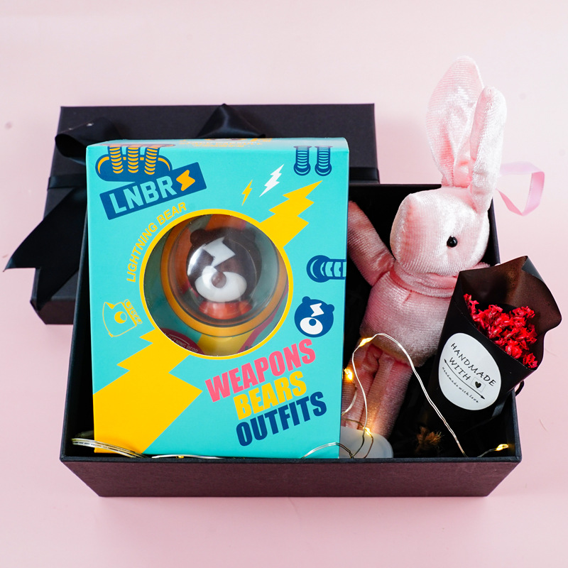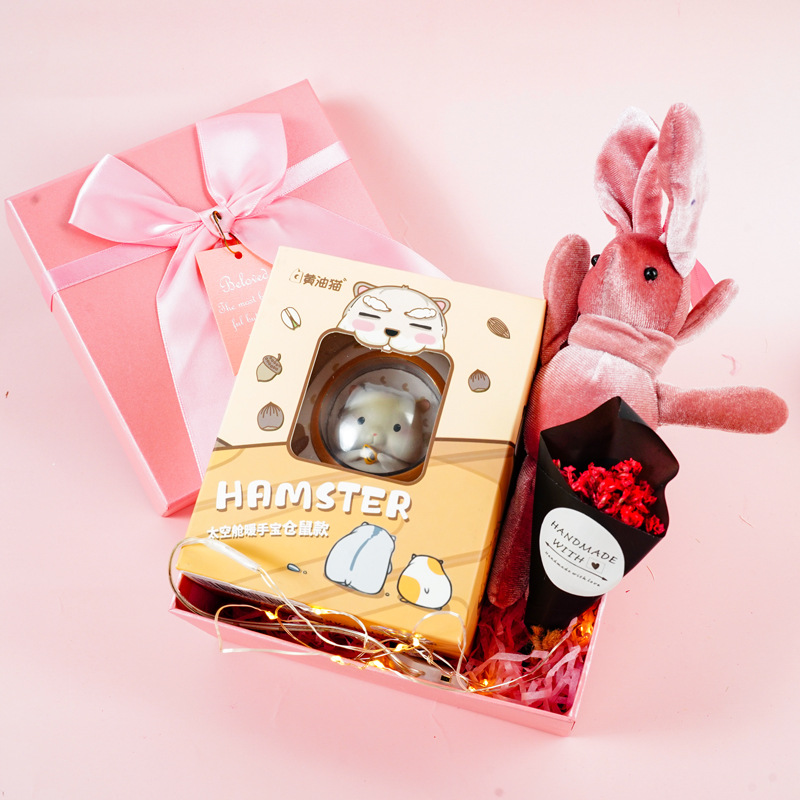 Color: white, red Christmas, cow, bear, pink gift box (holding flowers, rabbits, lights, grass)