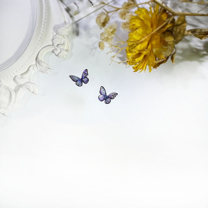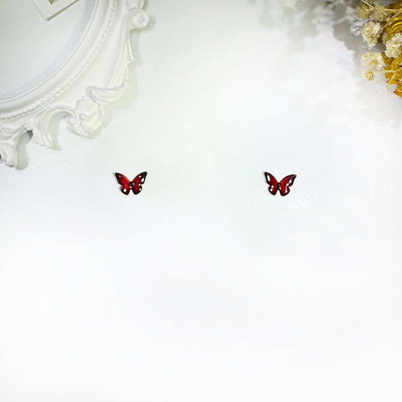 Colors: blue pair (resin ear clips), gray-purple pair (resin ear clips), moonlight white pair (resin ear clips), red pair (resin ear clips), gray-green pair (resin ear clips), orange pair (resin ear clips), retro green pair (resin ear clips), ink-wash butterfly pair (resin ear clips) and black butterfly pair.
