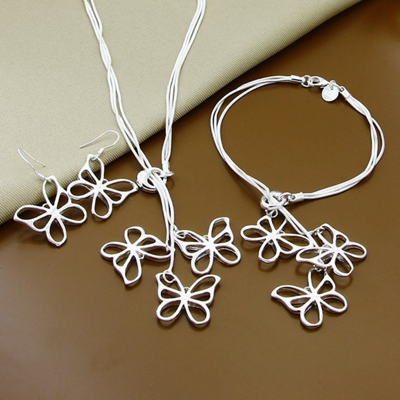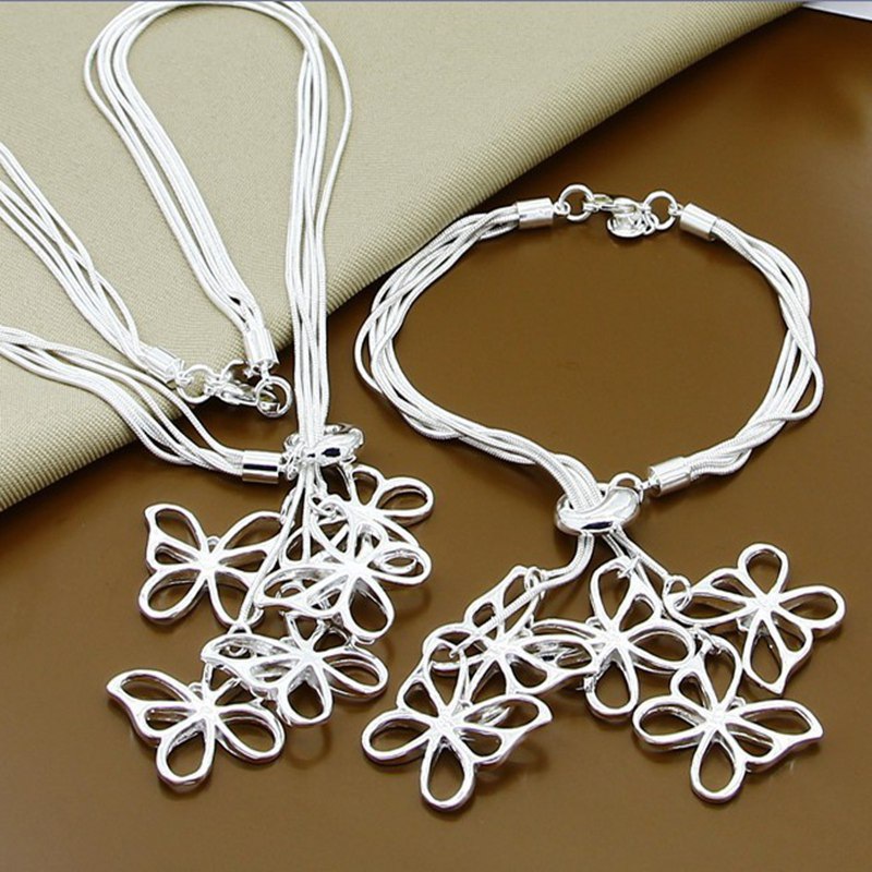 Product name: Silver-plated European and American fashion five empty butterfly bracelet necklace set T012 Product color: Silver (photographed in kind, if there is color difference, please refer to the actual product)