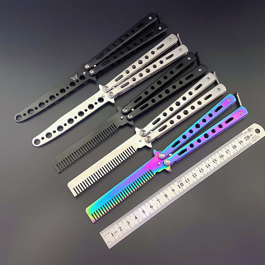 Butterfly Comb Stainless Steel Folding Practice Training Knife Combs Hairdressing Beard Moustache Brushes Hair Styling Tools