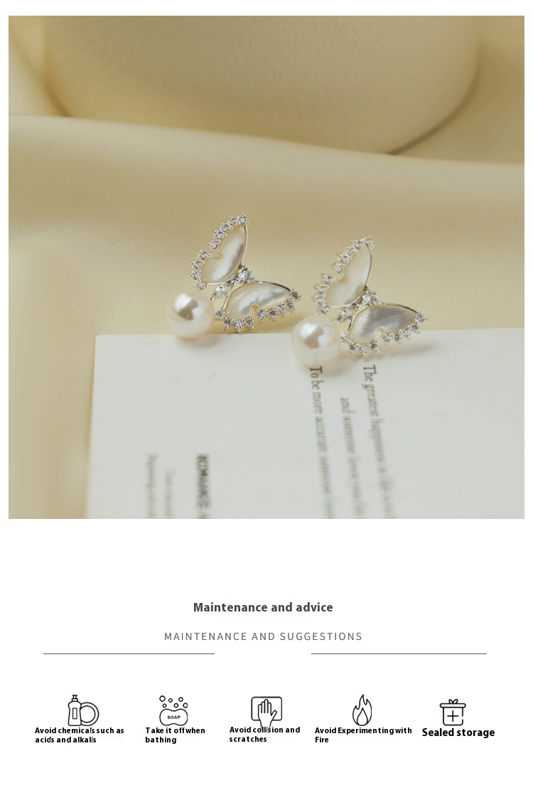 Butterfly Full Diamond Pearl Earrings For Women