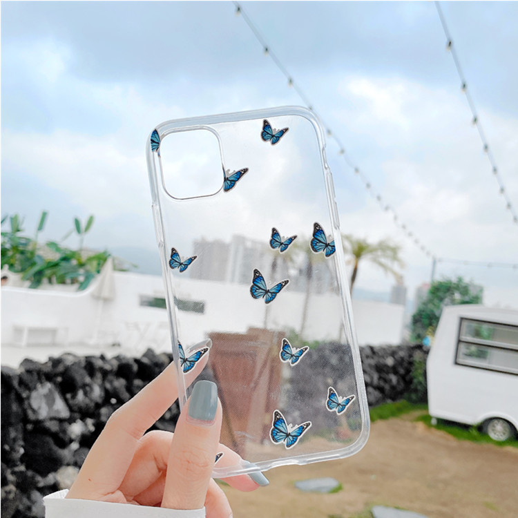 Color: many blue butterflies Transparent TPU: white