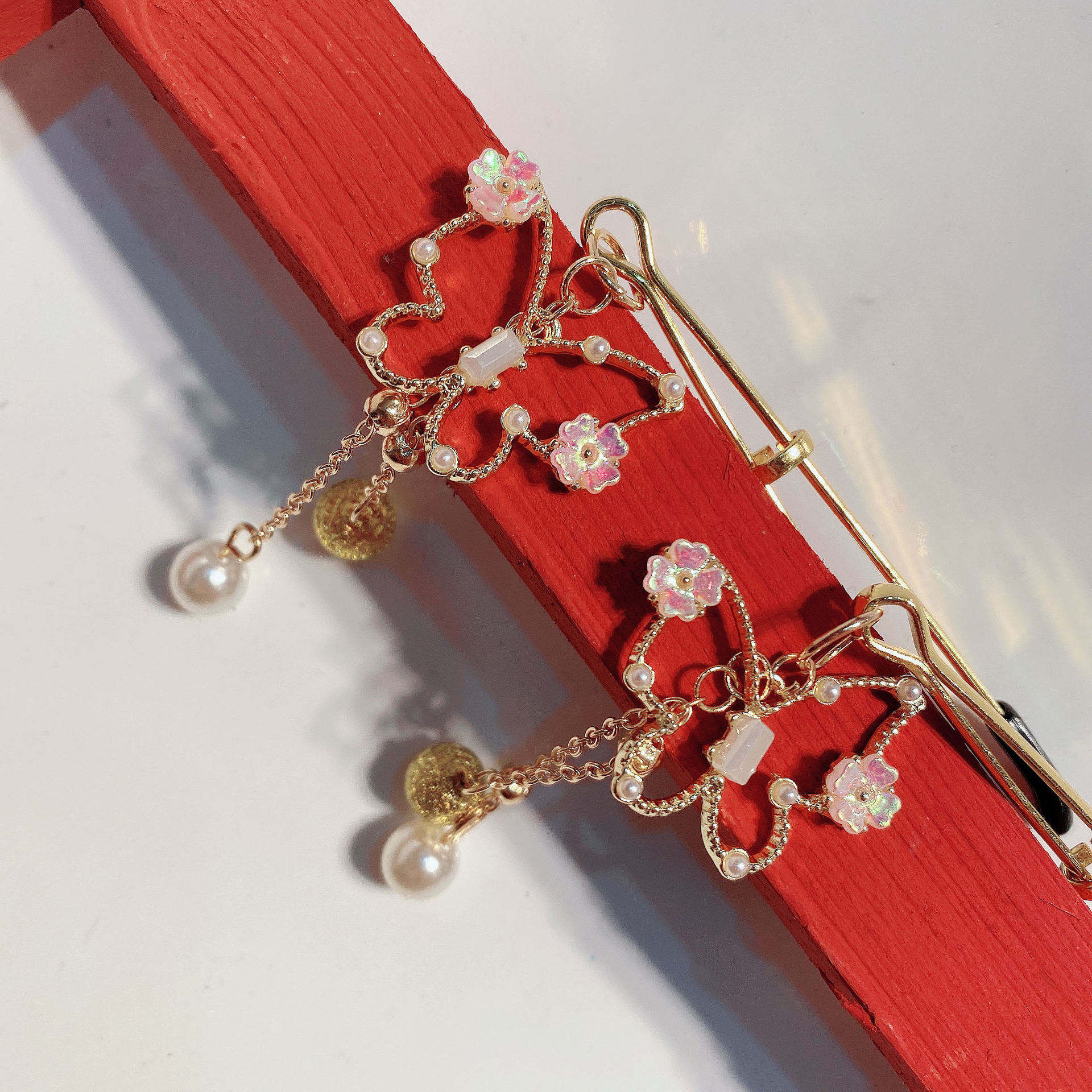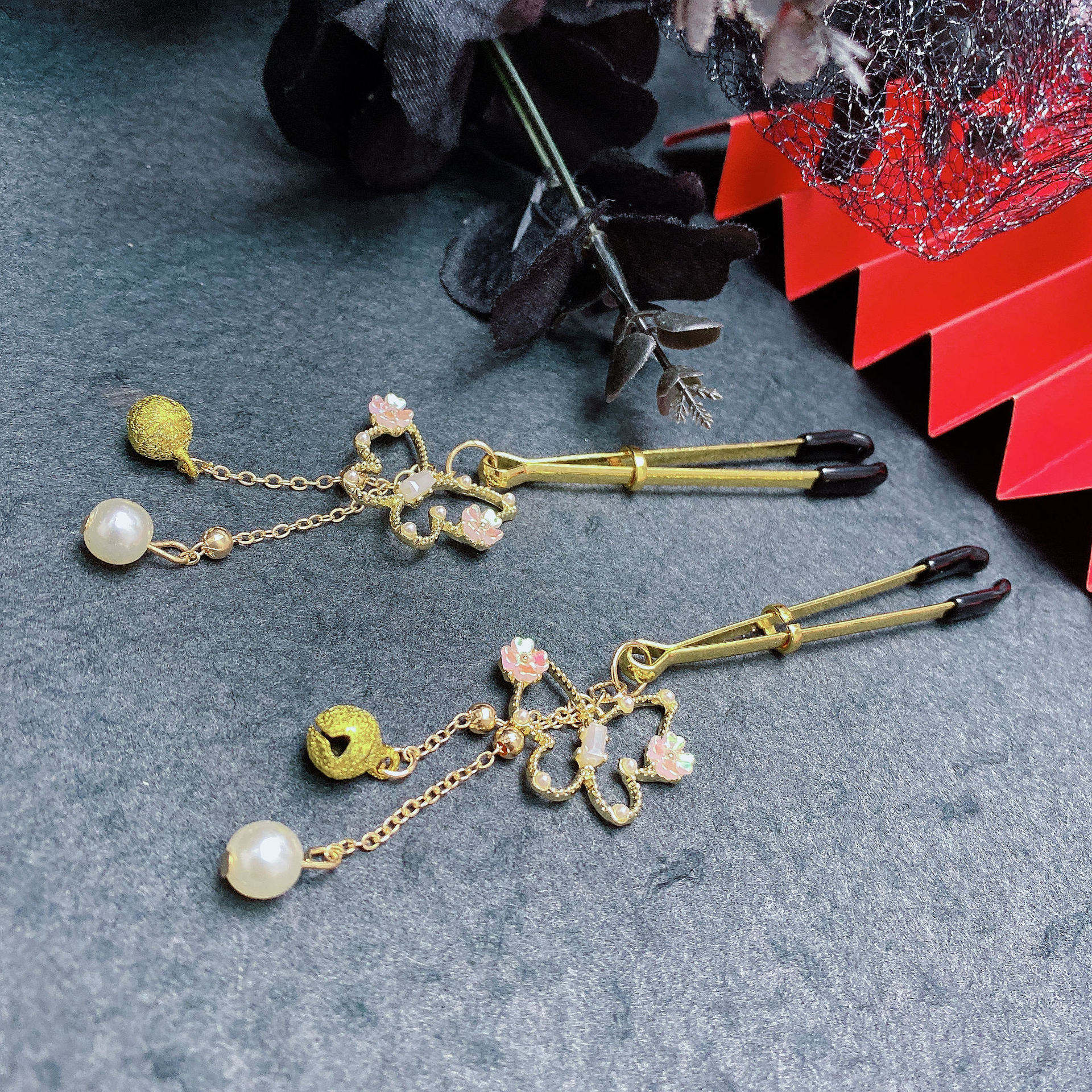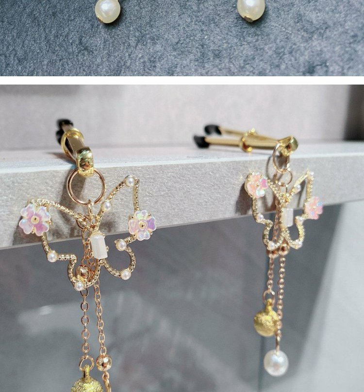 Product Details:Category: Breast clipStyle: ButterflyTarget: AdultSpecification: Bell, pearlProduct Packaging:Breast clip * 1 pair