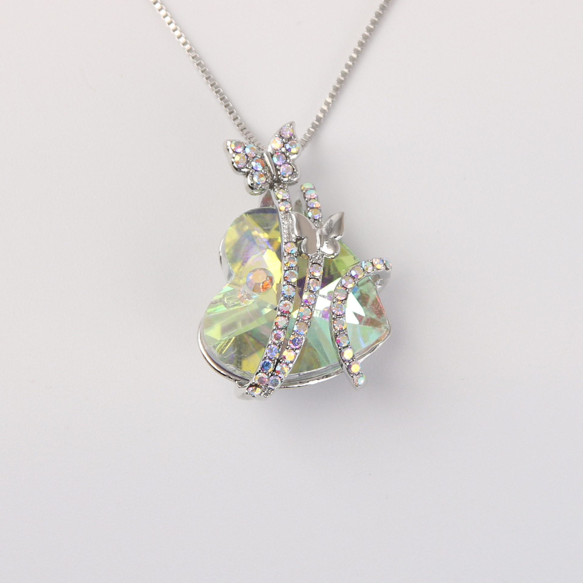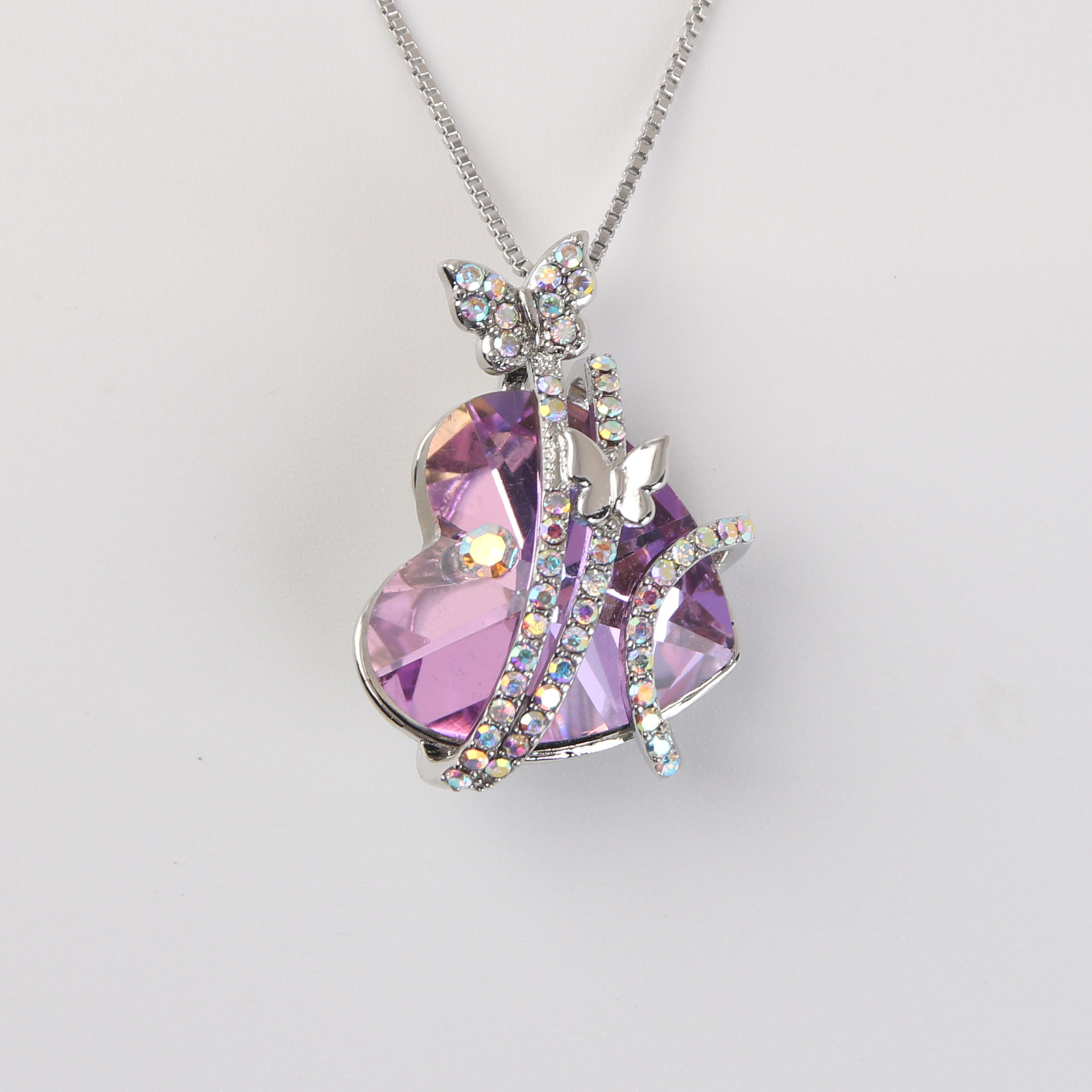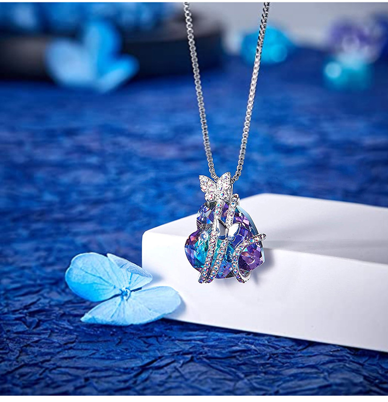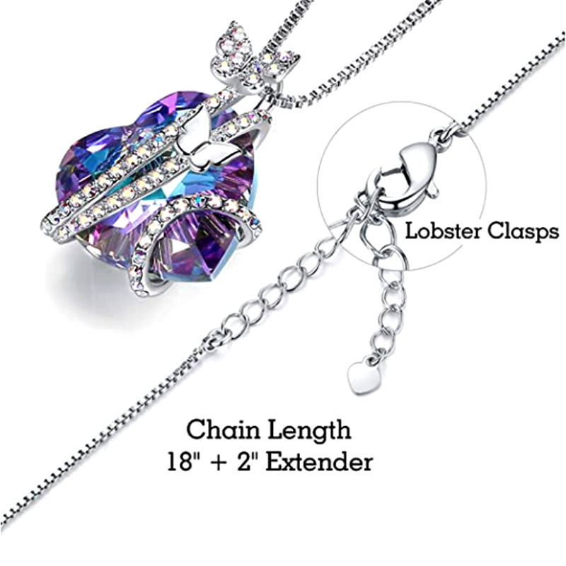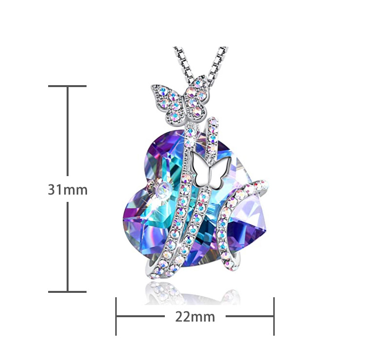 Color: blue peach heart crystal necklace, opal peach heart crystal necklace, light purple peach heart crystal necklace