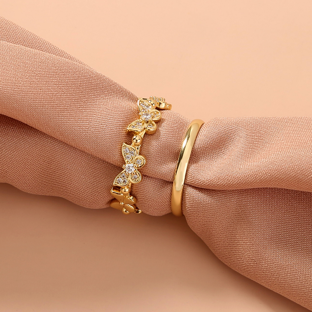 Butterfly Zircon Adjustable Brass Ring