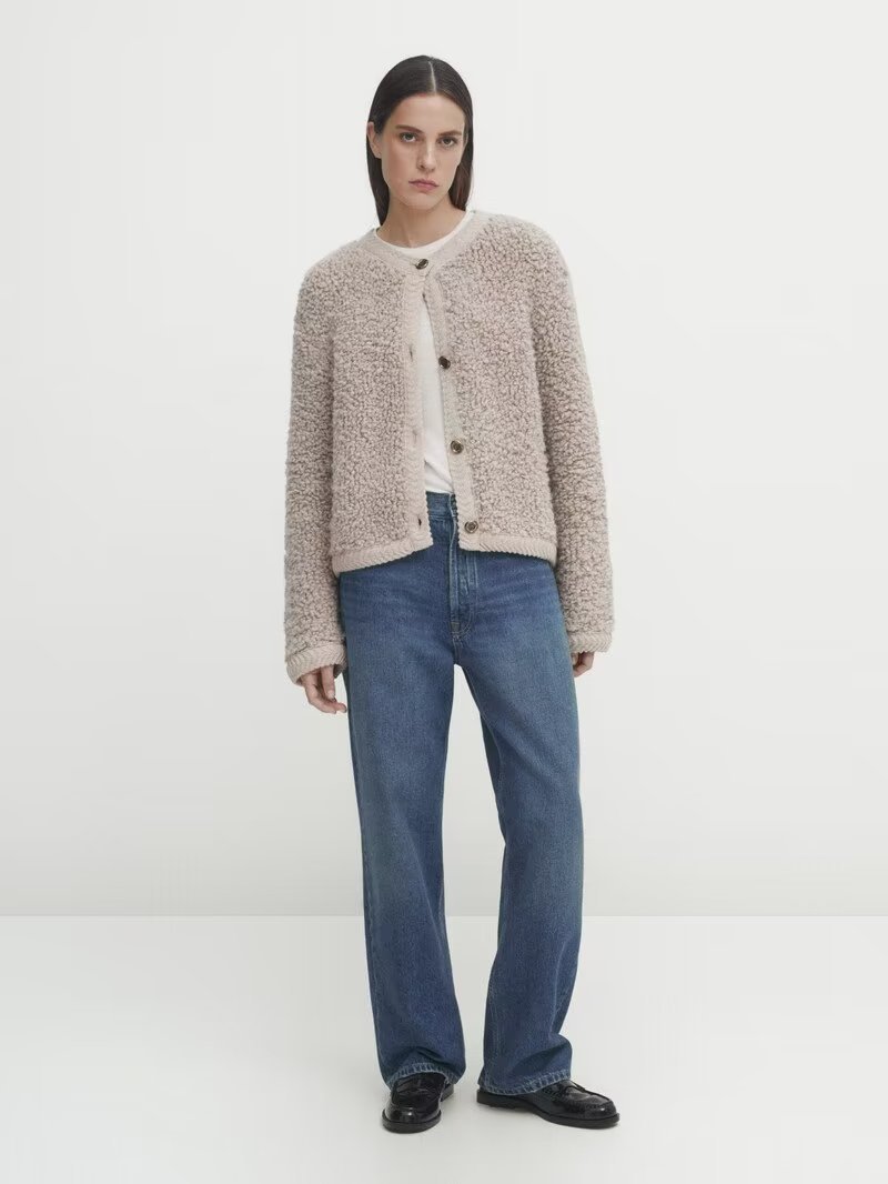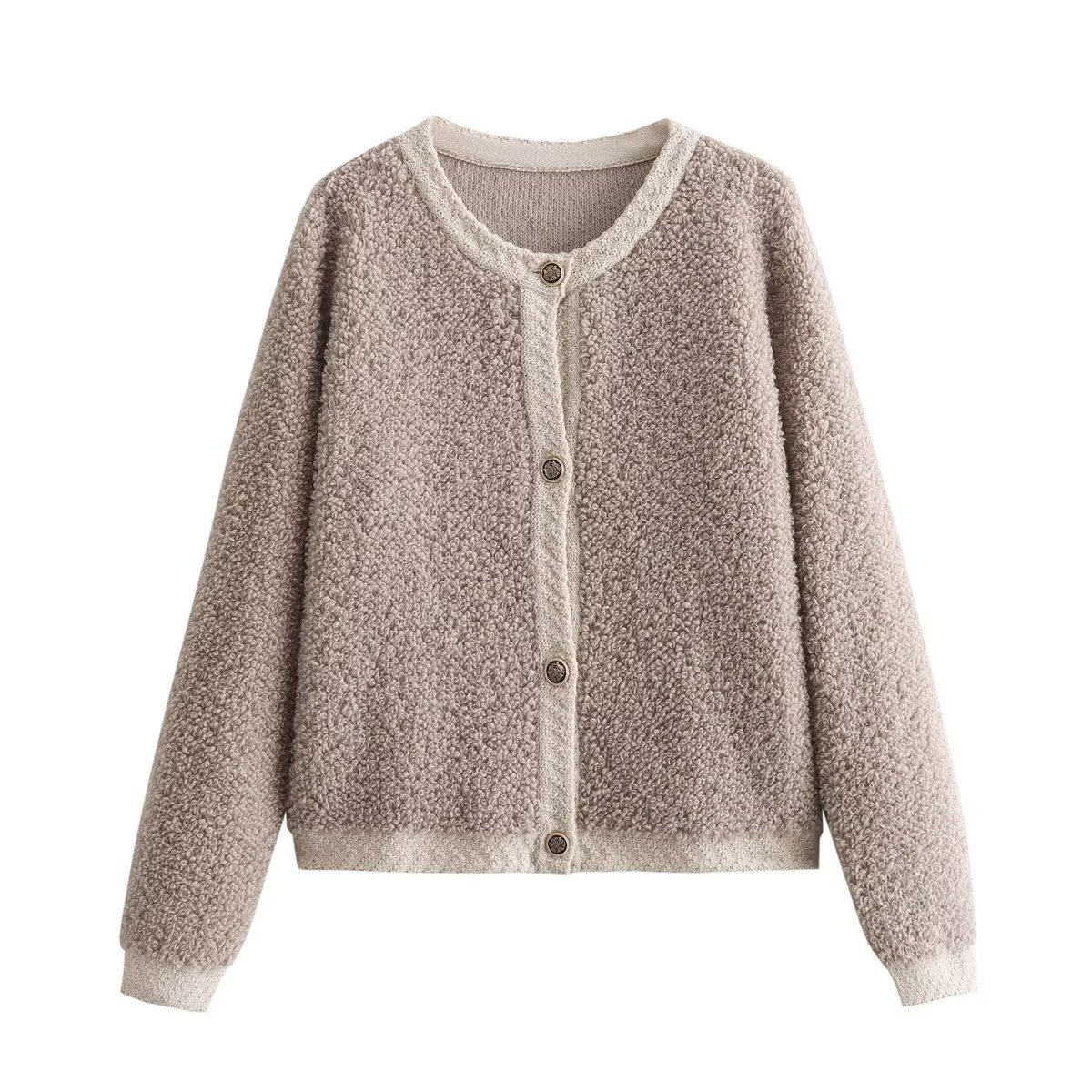 Button Decoration Terry Yarn Knitting Cardigan Jacket