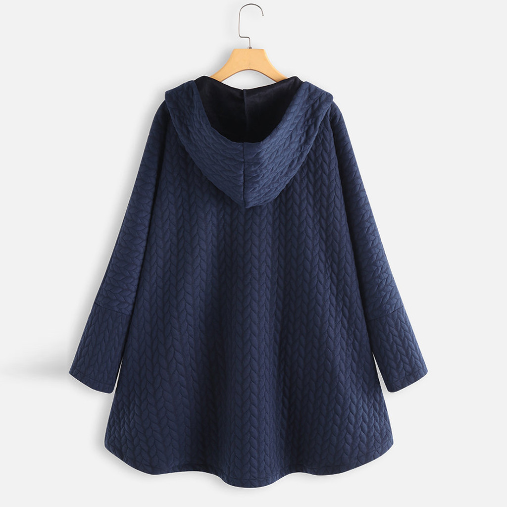 Women Plus Size Casual Button Pockets High Low Long Sleeve Hooded Coat