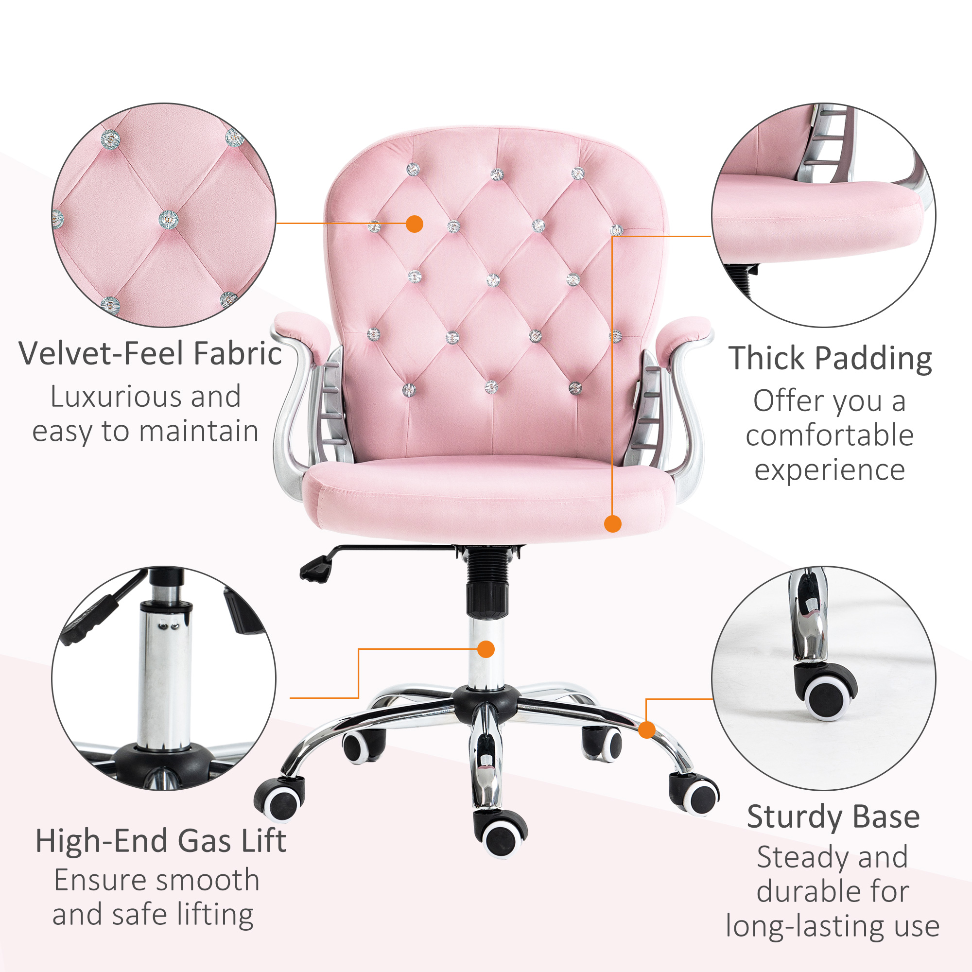 Button Tufted Desk Chair, Home Office Chair With Padded Armrests, Adjustable Height And Swivel Wheels, Pink