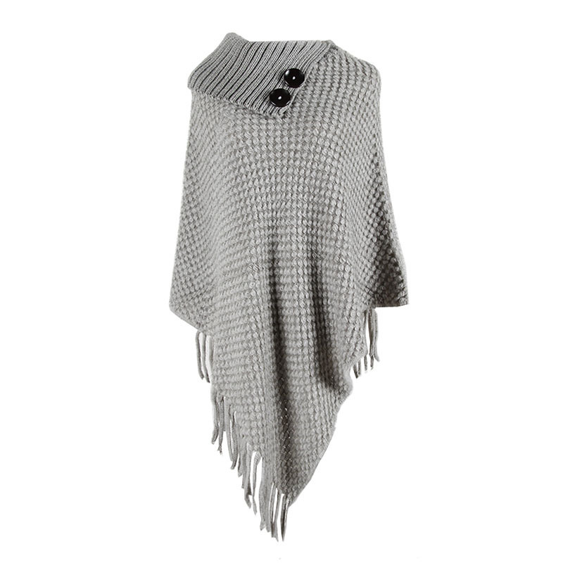 Buttoned half-open collar tassel cape shawl