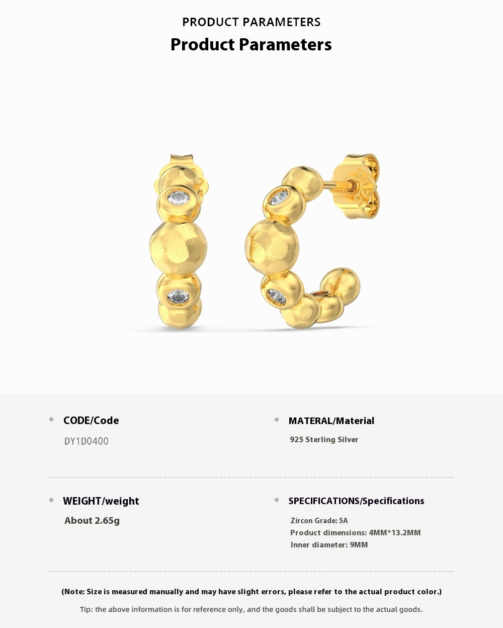 Color: white gold DY1D0400-S-W-WH, gold DY1D0400-S-G-WH