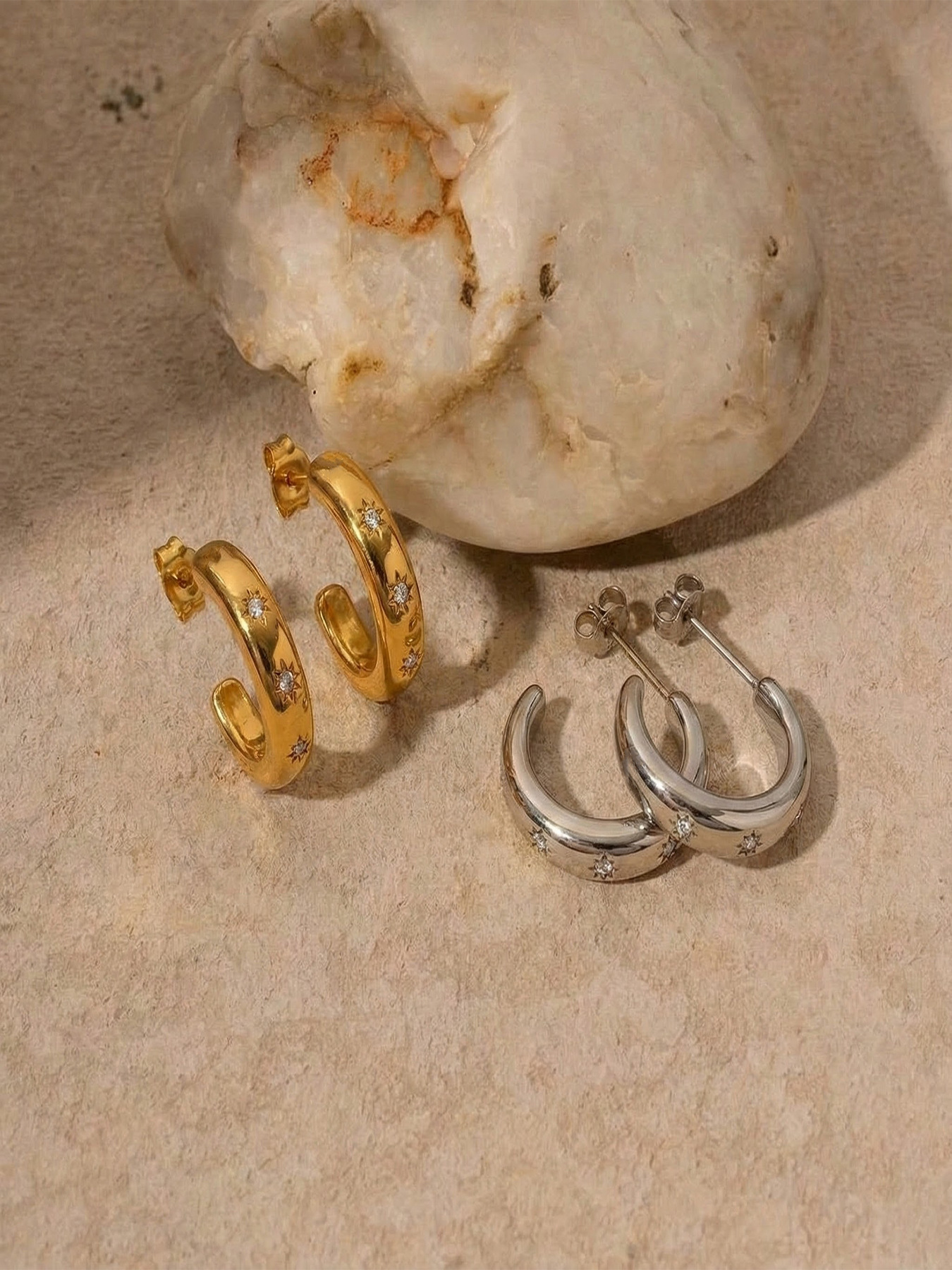 Color: Gold Earrings, Steel-Colored Earrings