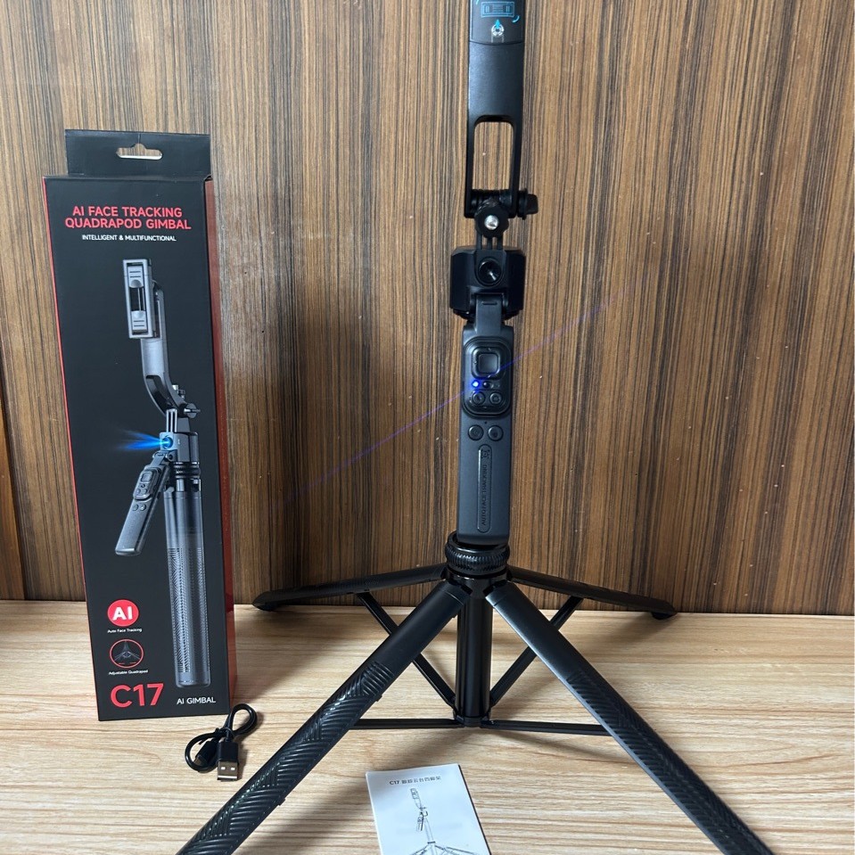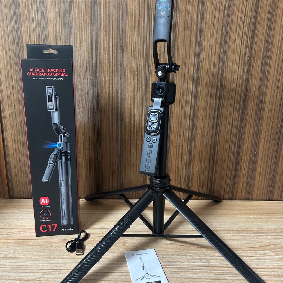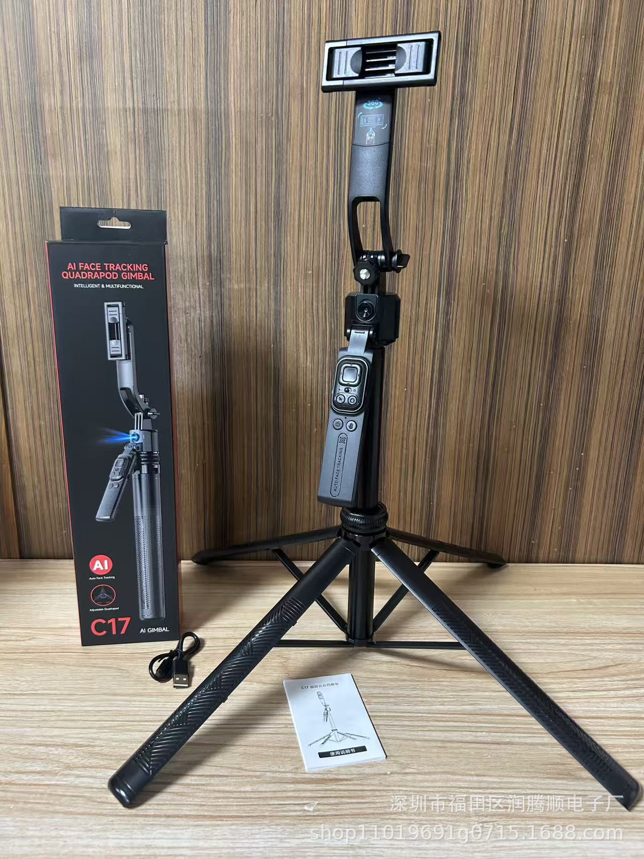 Color: [C17 - 1.63 m] 360° Smart Auto Tracking + Aluminum Alloy Pan-Tilt Head Pole + Bluetooth Remote Control + Anti-Shake Handle + Skeletal Four-Leg Tripod