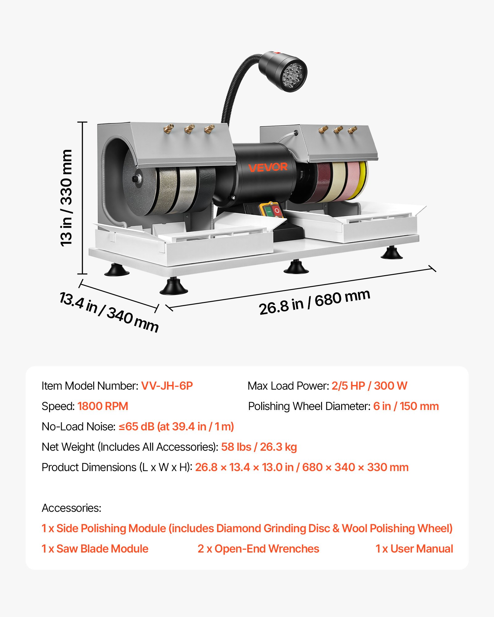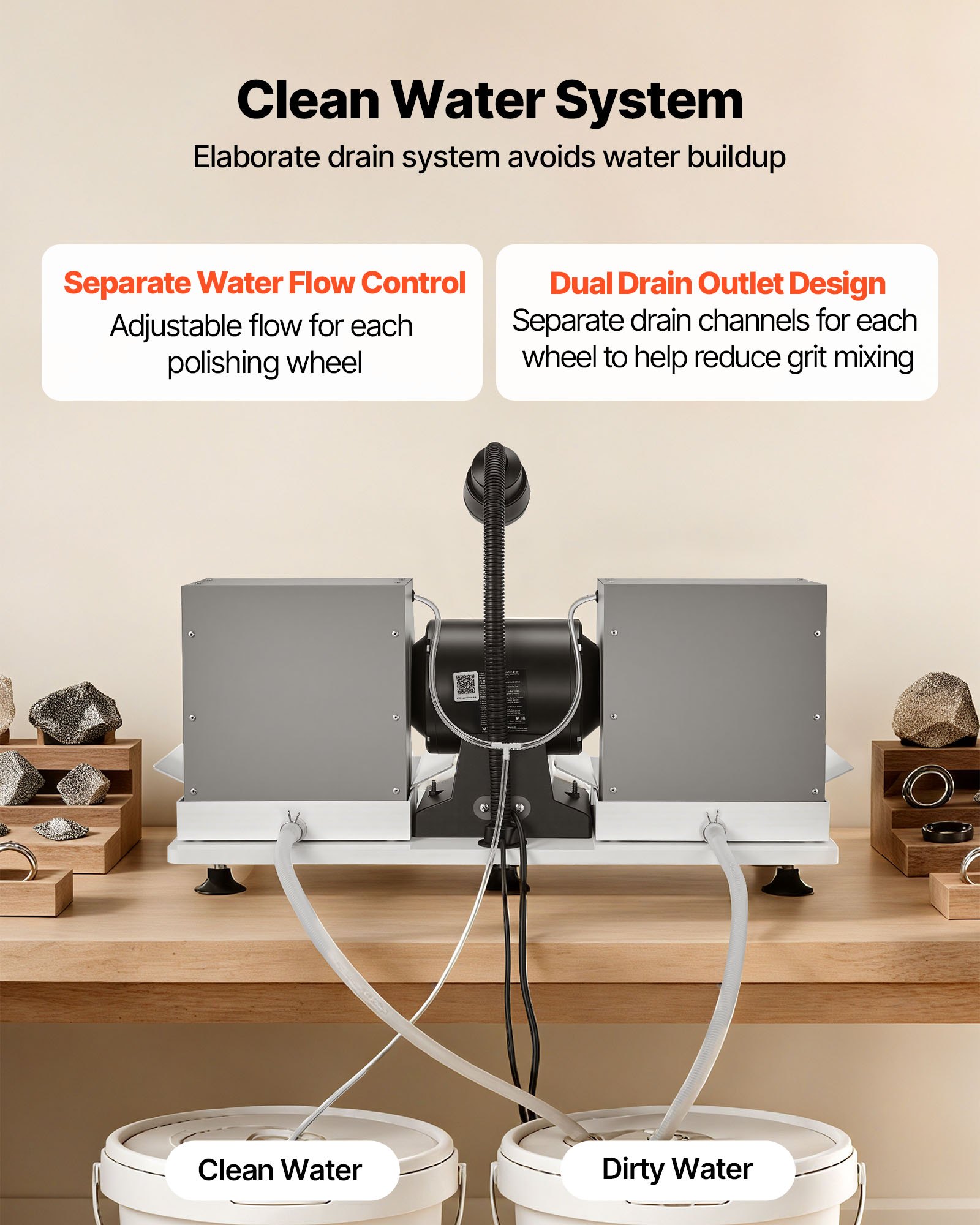 Powerful Performance: Powered by a smooth, low-noise 2/5 HP, 1800 RPM direct-drive motor, this lapidary rock grinder polisher creates cabochons for necklaces, earrings, and rings, and also polishes ceramics, metal pendants, wood, and other crafts