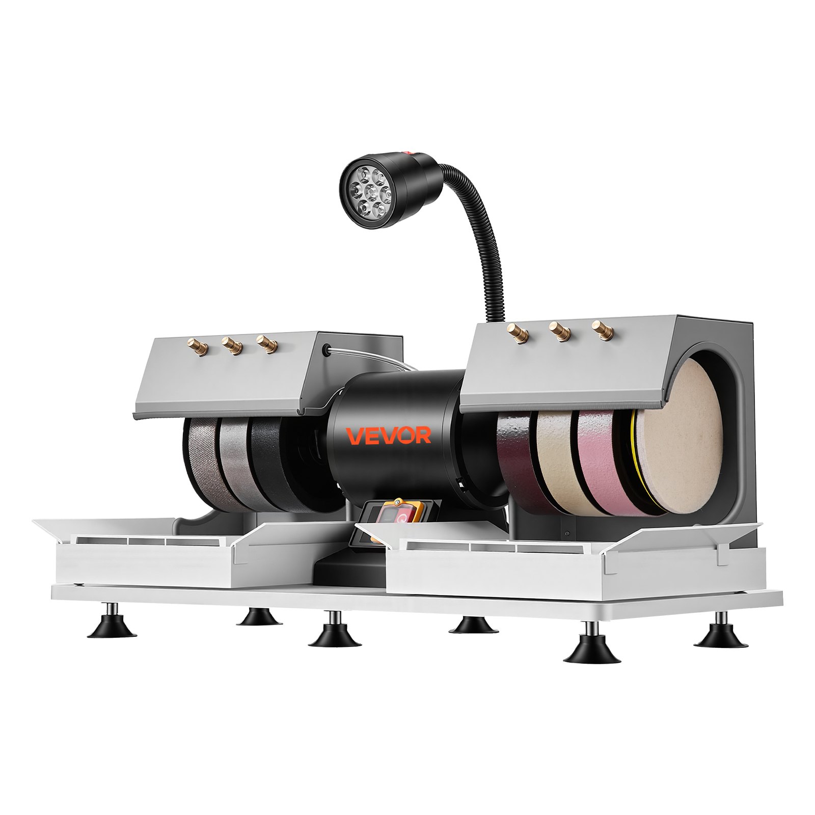 Compact Design: The electromagnetic switch provides overcurrent protection during operation. The adjustable top-mounted lamp of the flat lapidary machine adds extra lighting, while the 304 stainless steel housing resists fingerprints