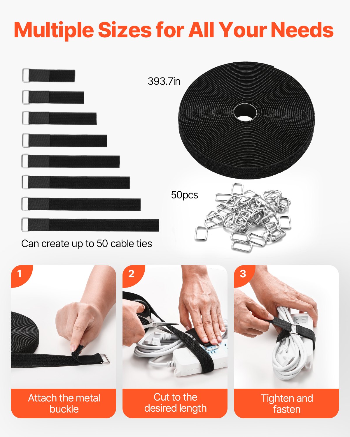 Easy to Use: Simply thread the adjustable strap through the metal buckle, adhere it in the opposite direction, and then cut it to the appropriate length. You can create up to 50 hook-and-loop straps