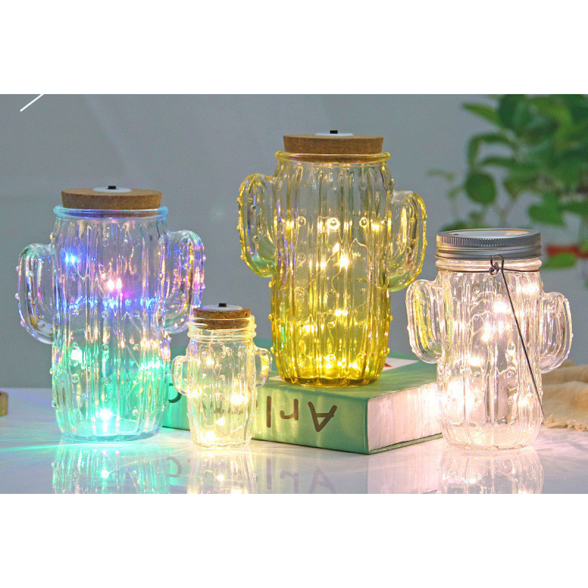 Style: A: Cactus + Stainless Steel Ring + Warm White Light String + Ring, B: Cactus + Stainless Steel Ring + Four Color Light String + Ring, C: Cactus + Solar Warm White + Ring, D: Cactus + Solar Colorful + Ring