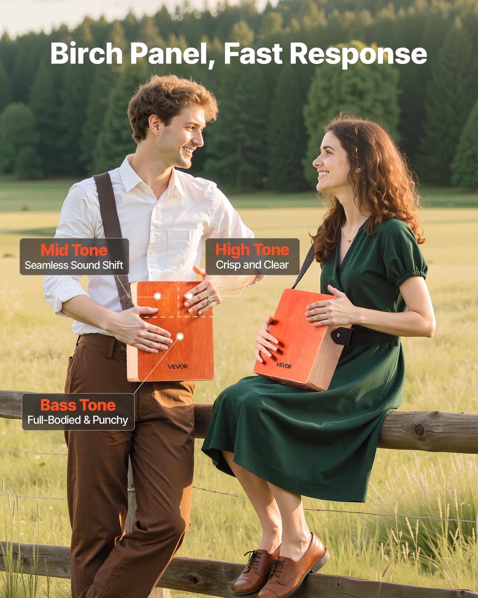 Punchy Birch, Clear Sound: Made with premium birch, this cajon box drum reacts precisely to every touch. Enjoy warm, booming bass tones and snappy, clear highs for a natural, responsive feel that brings each beat to life