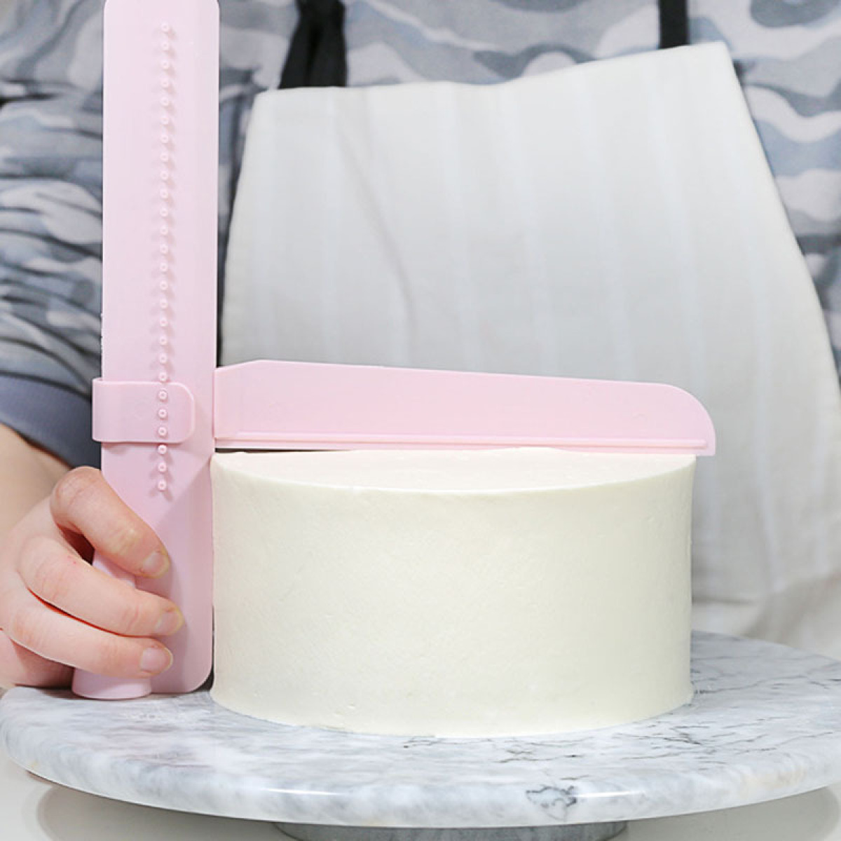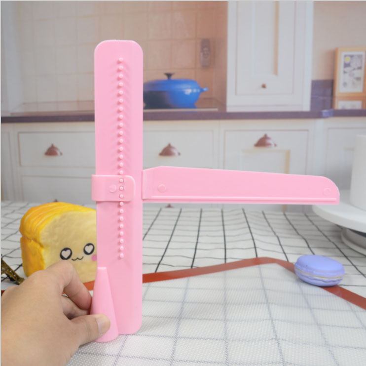 [Name] Adjustable height cake smoother/scraper[Material] Food Grade Plastic[Size] 23.5*20.5cm[Use] Surface treatment of cream, fondant and cake