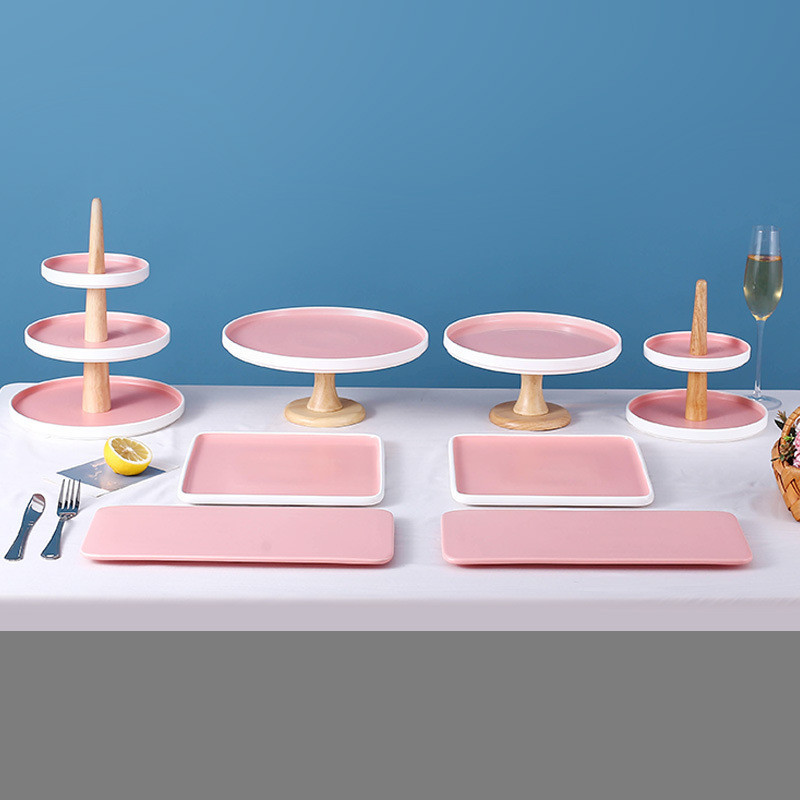 4 styles: [pink] large-two-layer ceramic fruit plate