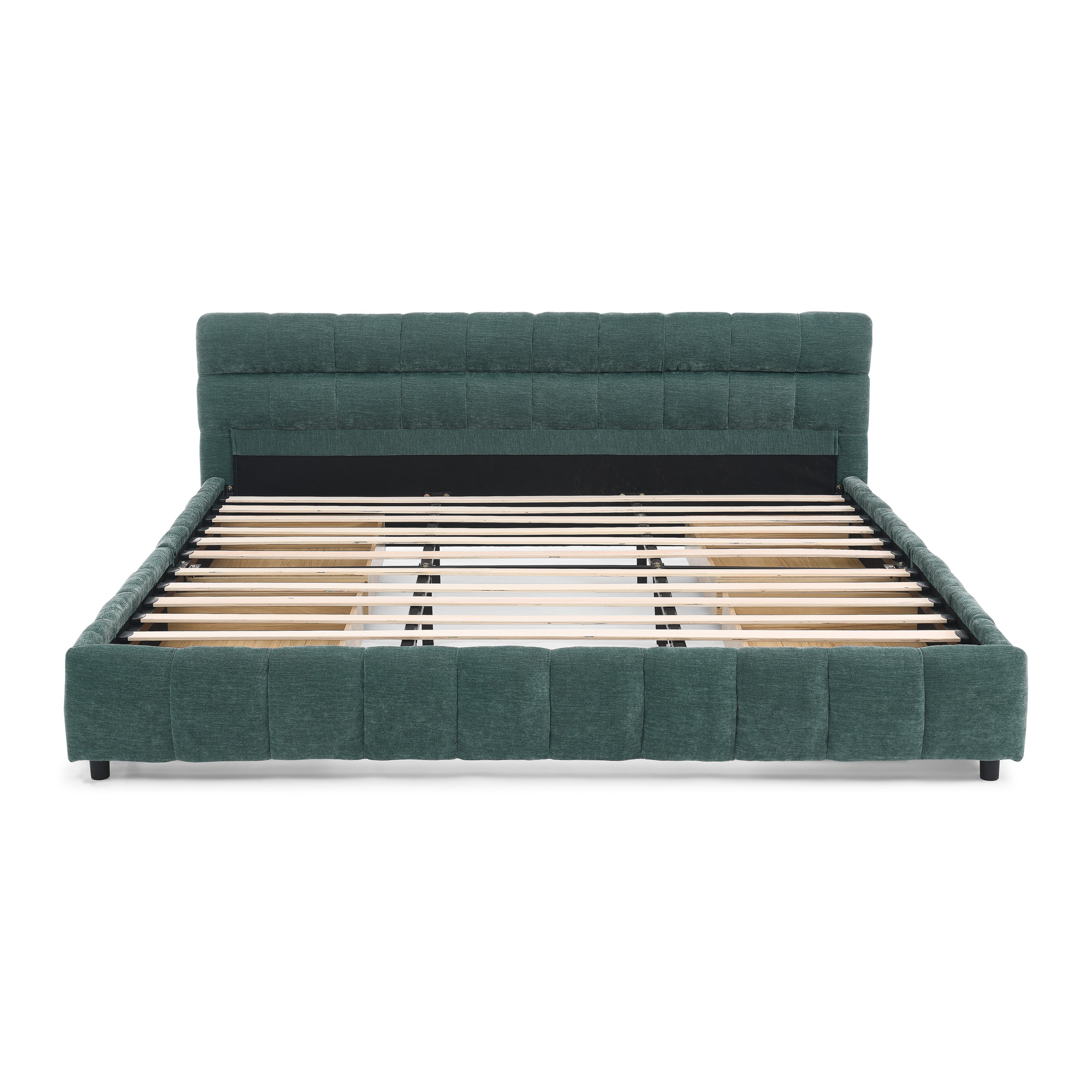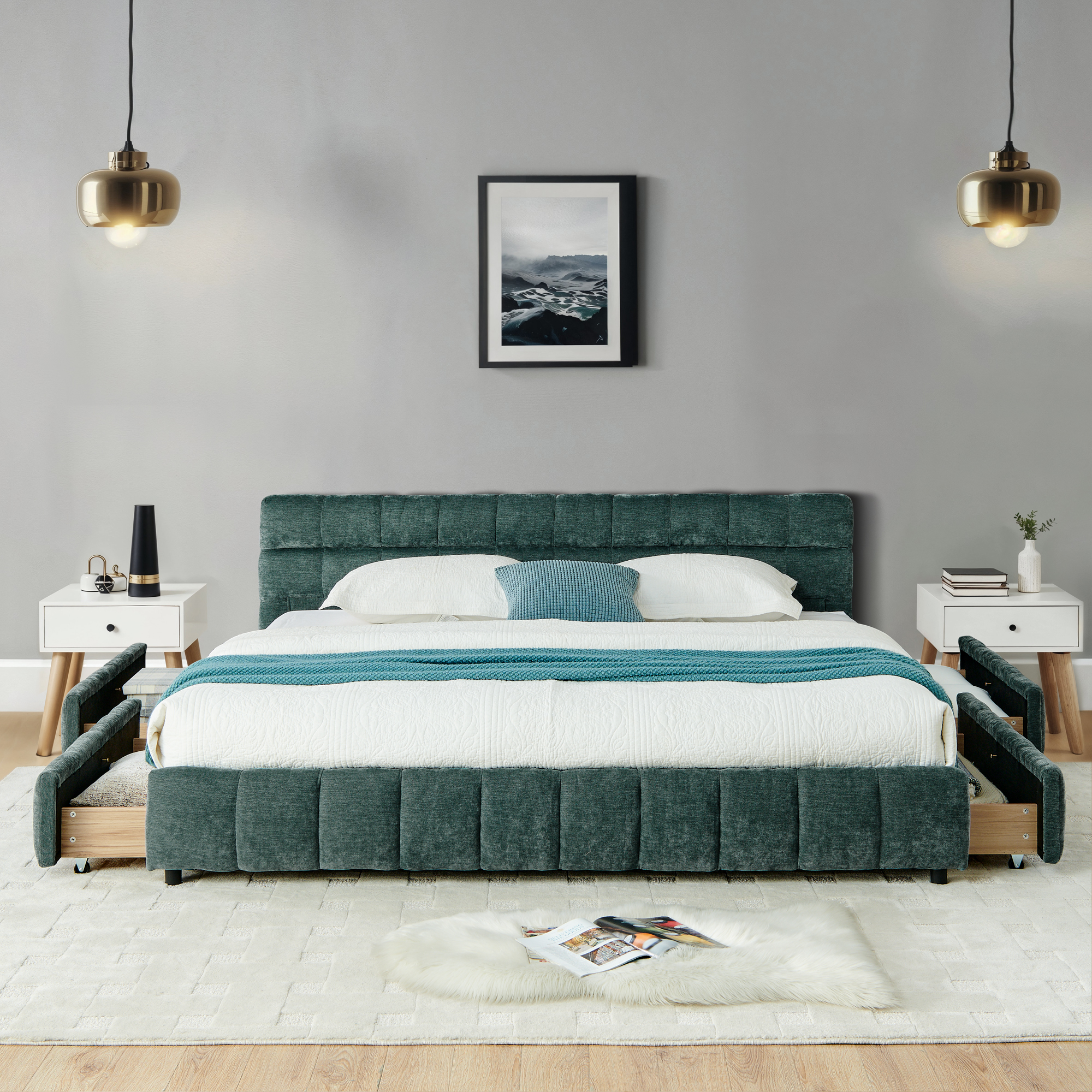 Product Name:California King size Upholstered Bed ,comfortable upholstered bed frame, Chenille fabric, with headboard and solid bed frame. With drawer for storage.-Blue Green(90.5''*80.5''*31'')
