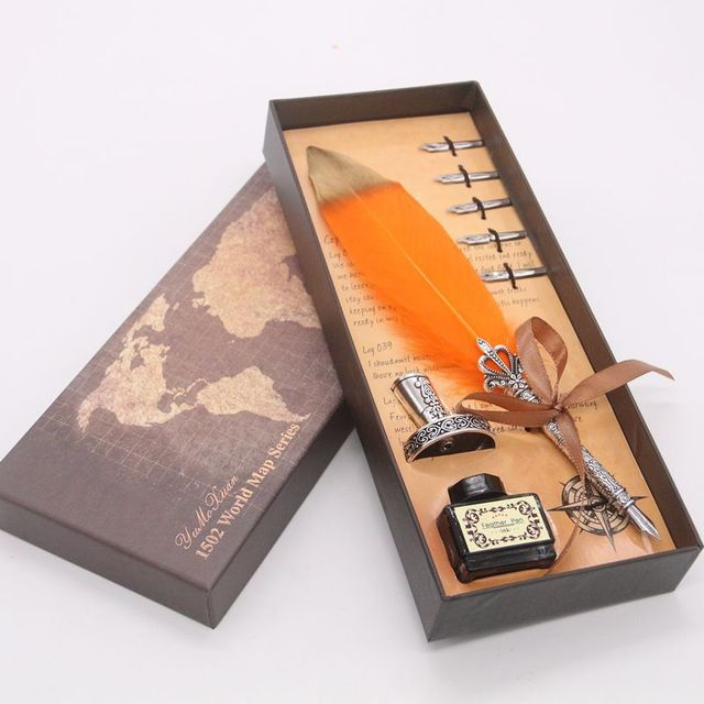 Feather dip pen set with 5 dip pen nibs. Made of natural feather, comfortable to hold. Elegant and unique perfect gift for your friend, family members or as a teacher's gift.