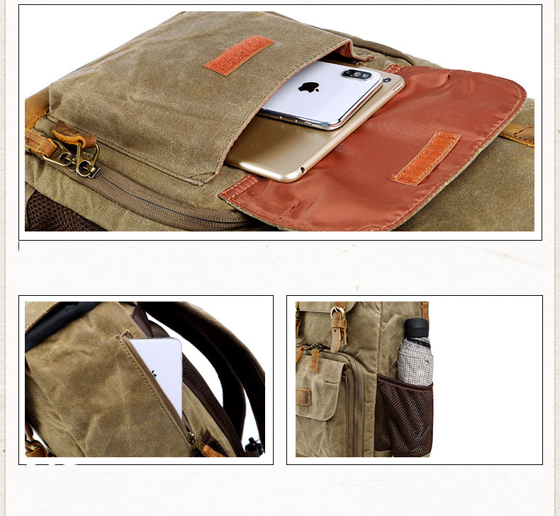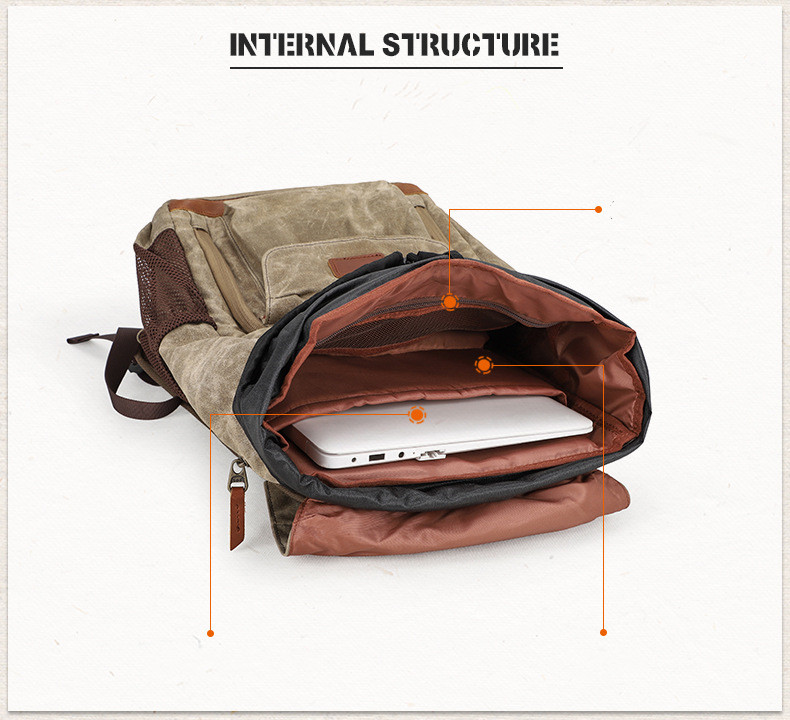 Bag structure: 1 main bag (built-in 15-inch laptop compartment) +2 side pocket +1 front pocket +1 back pocket + 2 internal zipper mesh pocket +1 side card pocket