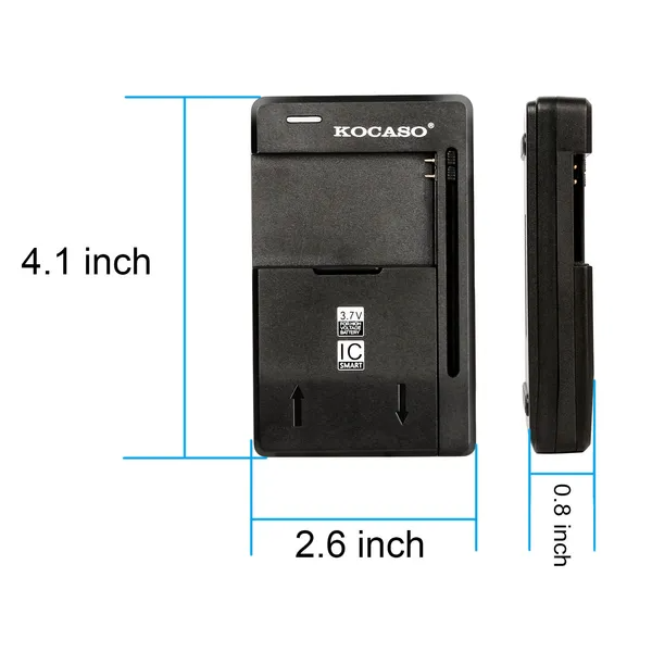 ** Compatibility*:Fit for 3.7V camera battery and cell phone wall battery. Adjustable charger can charge a variety of spare batteries. Suitable Width is from 1.3 in(Min.) to 3.8 in(Max).