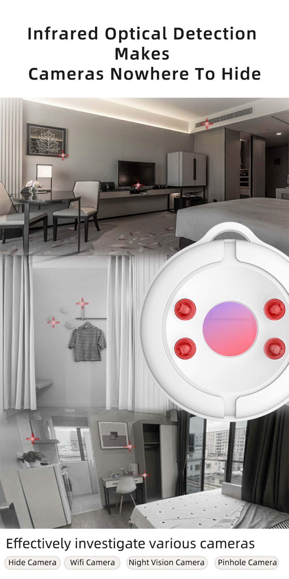 • Infrared Optical Detection :Equipped with infrared optical detection, it can identify and track invisible cameras even in complete darkness.