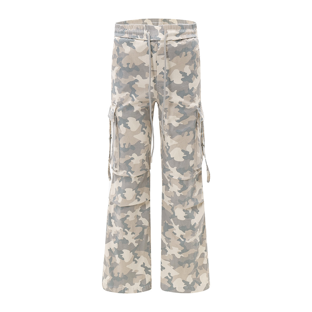 Camouflage Cargo Pants Men's Retro American Ripped Multi-pocket