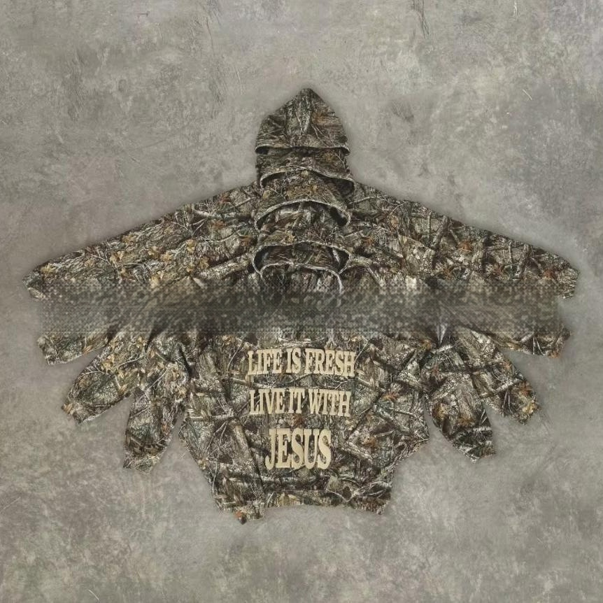 Camouflage Pattern Hoodie Long-sleeved Sweater For Women