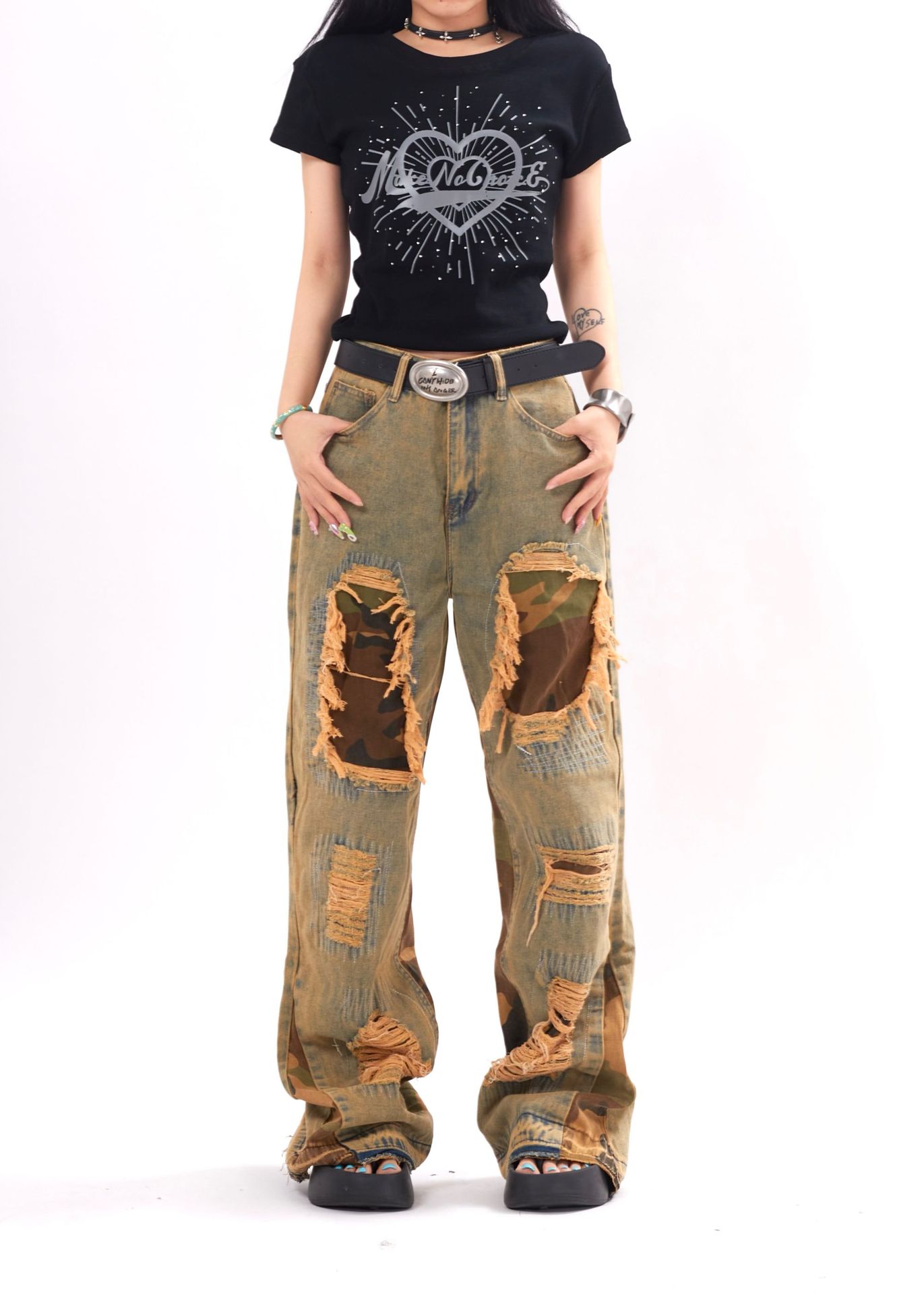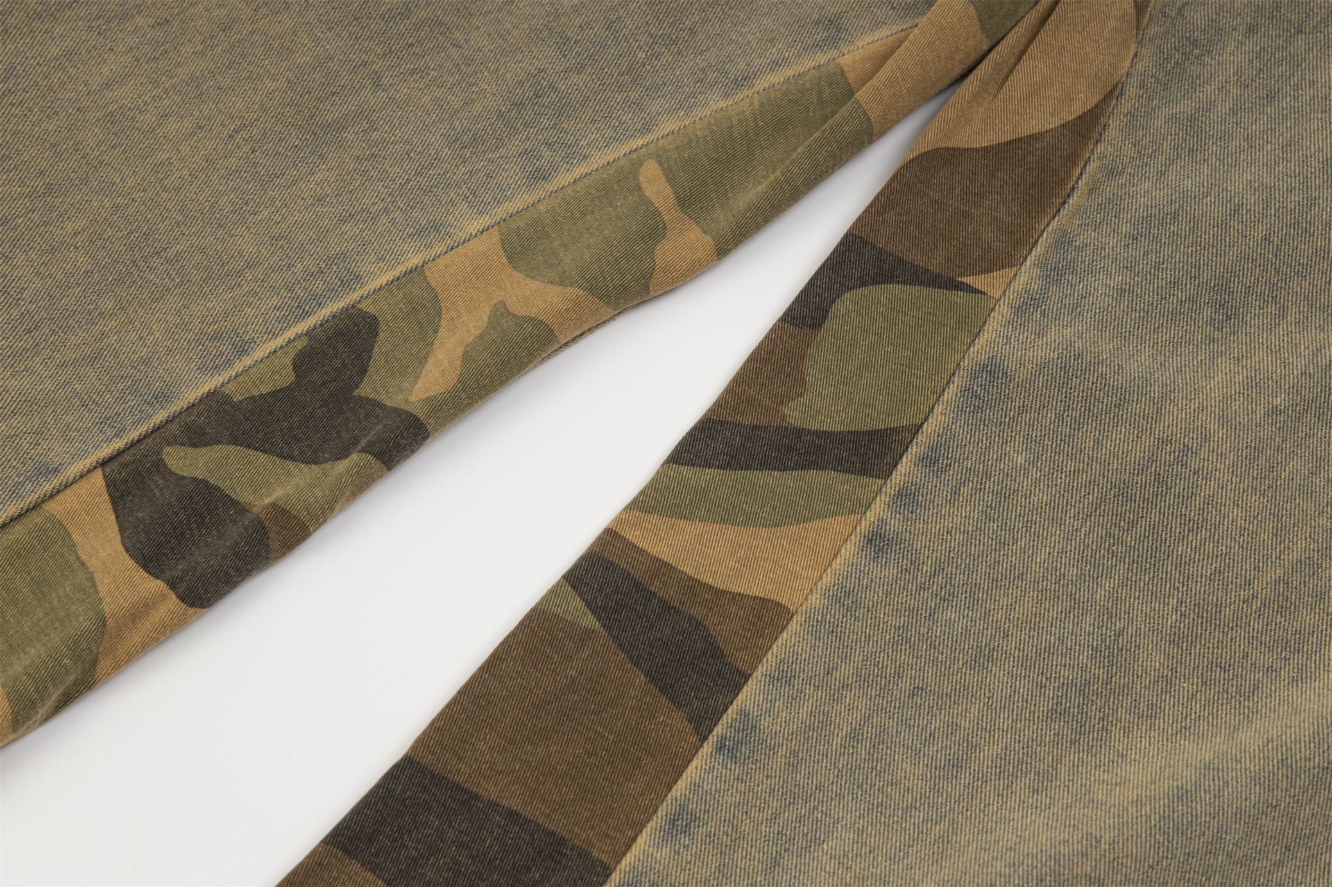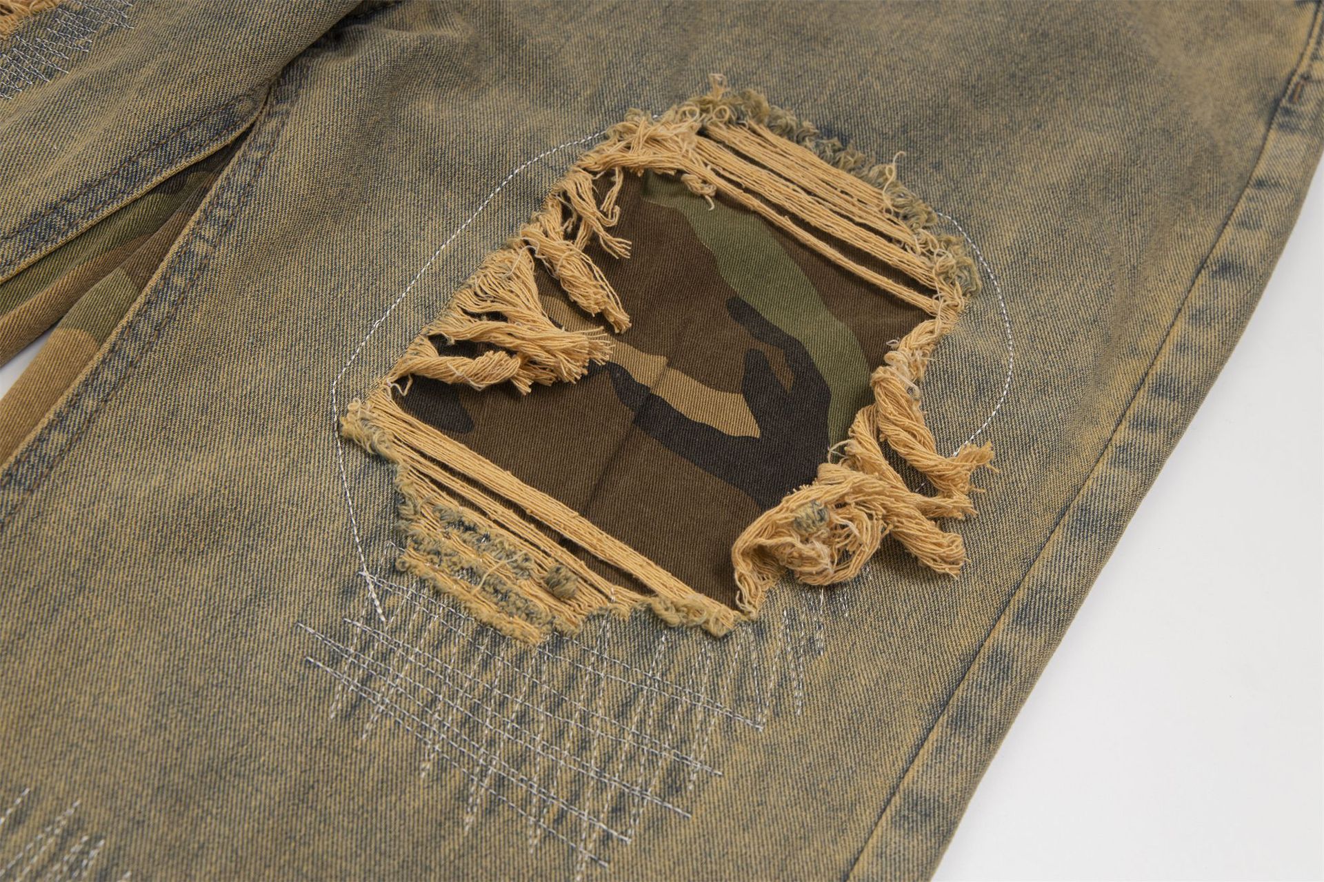 Camouflage Stitching Distressed Raw Hem Jeans Men