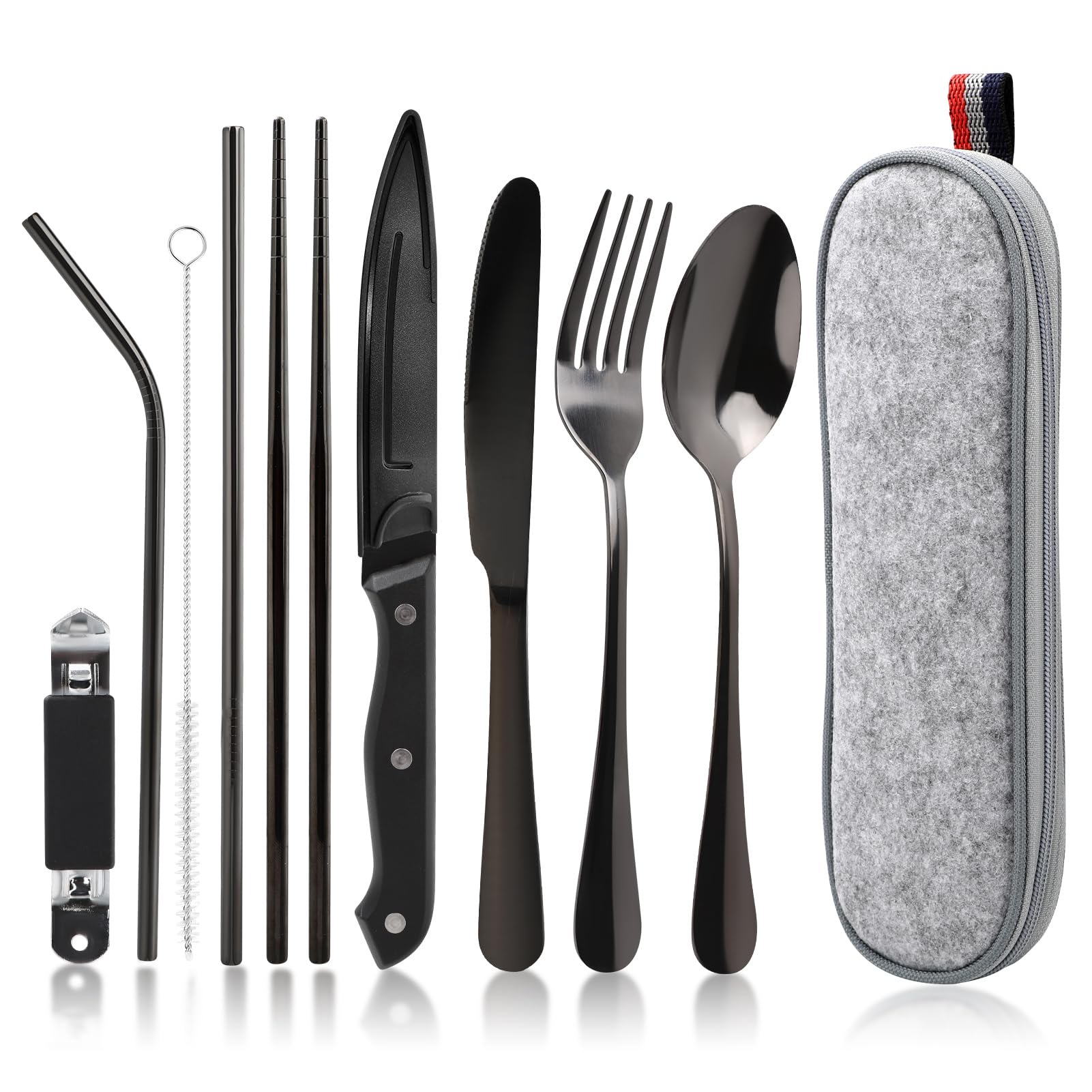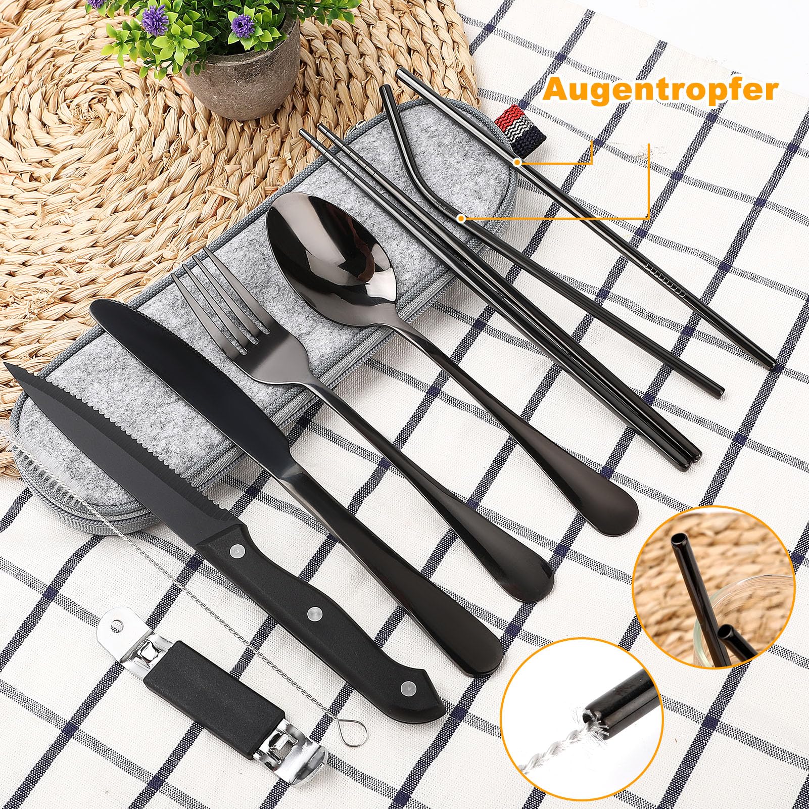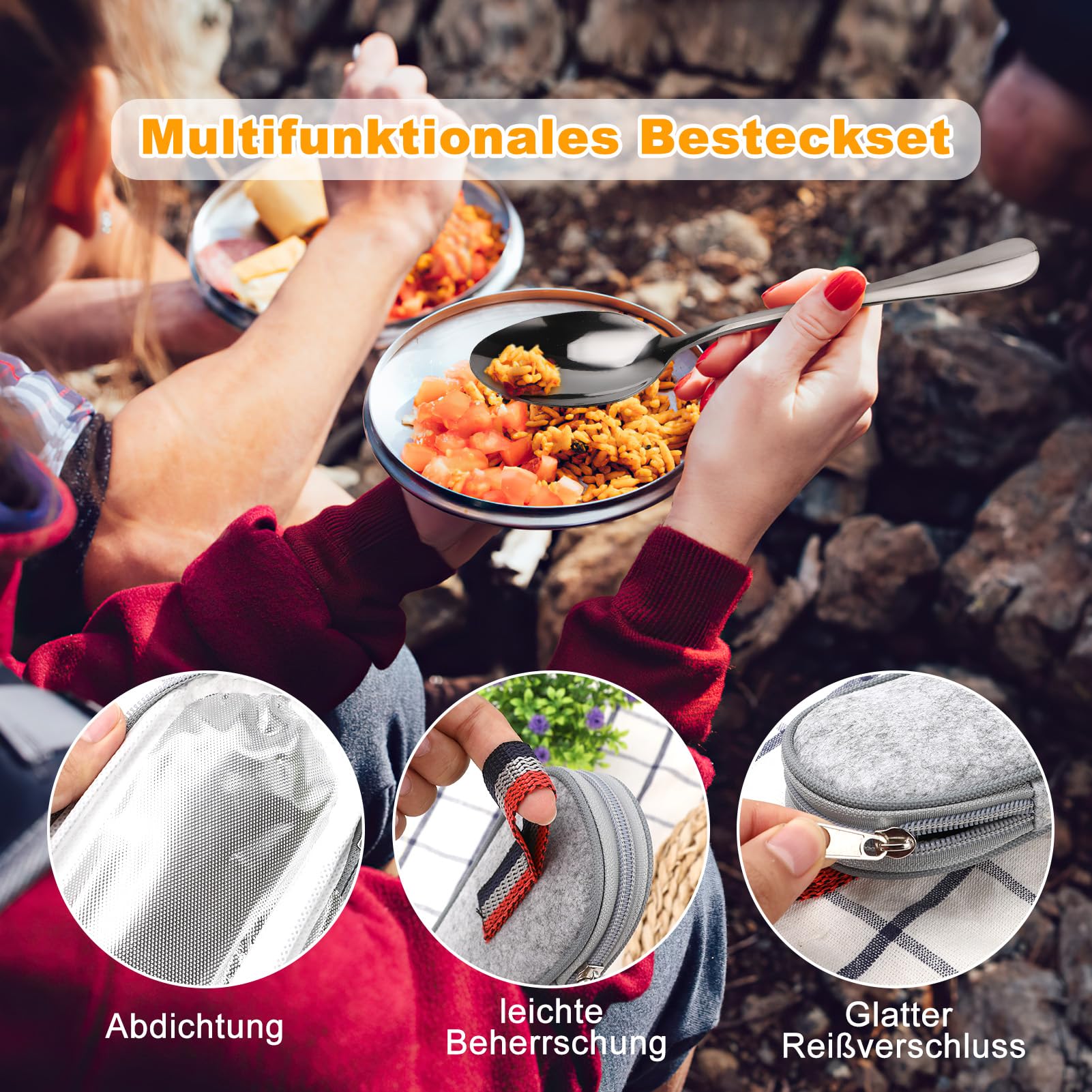 【Premium Materials】The camping cutlery set is made of stainless steel, which is rust-resistant, extremely durable, and easy to clean.