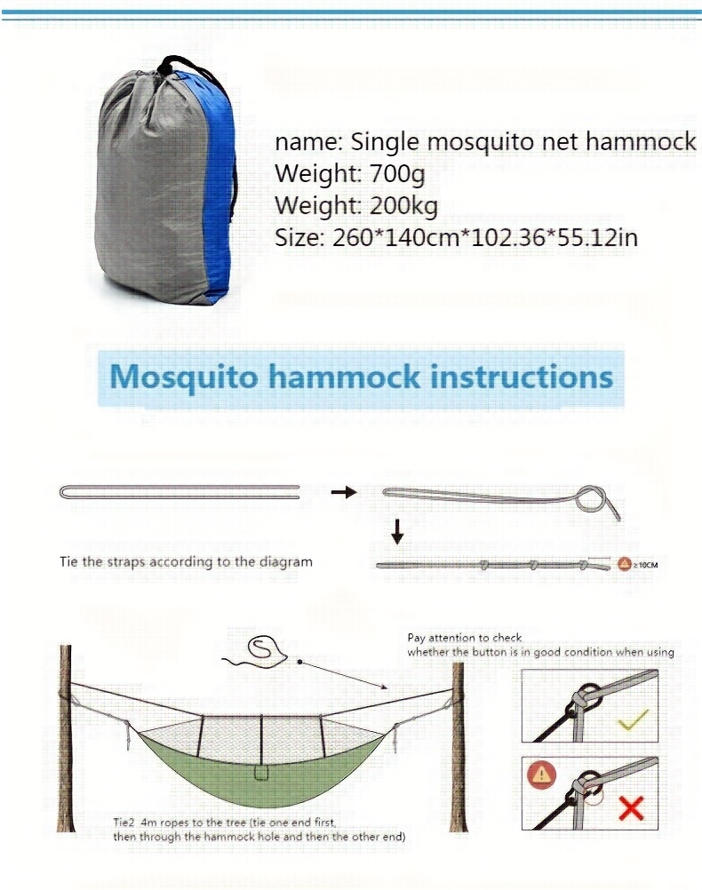 Camping Hammock Portable Double Hammock With Mosquito Net 2 Person Hammock Tent With 2tree Straps Best For Outdoor Hiking Travel