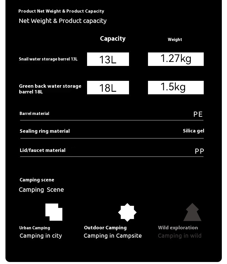 Color: green back water storage tank 18L, snail water storage tank 13L