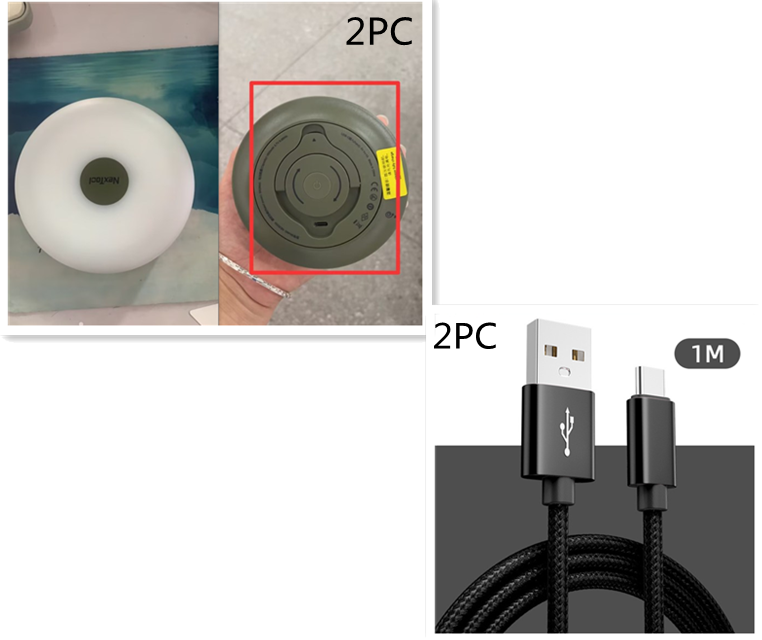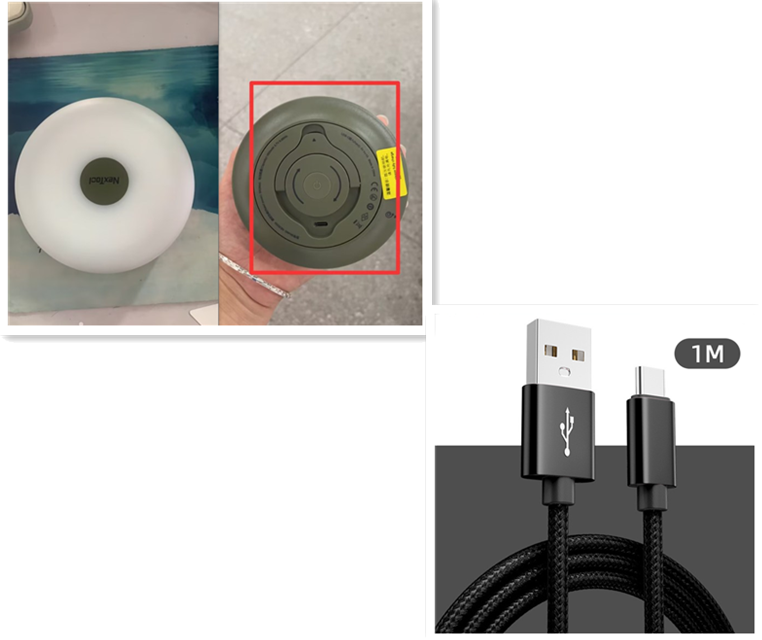 The physical product has a logo and no USB data cable