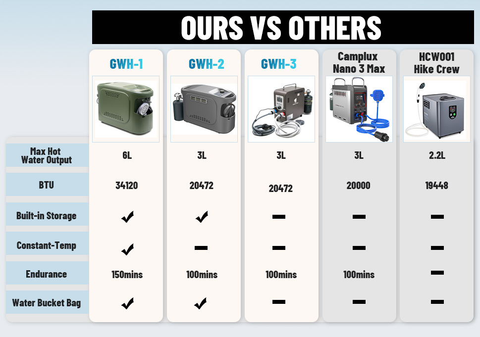 Specifications: Outdoor Portable Water Heater (490 x 213 x 315 mm)
