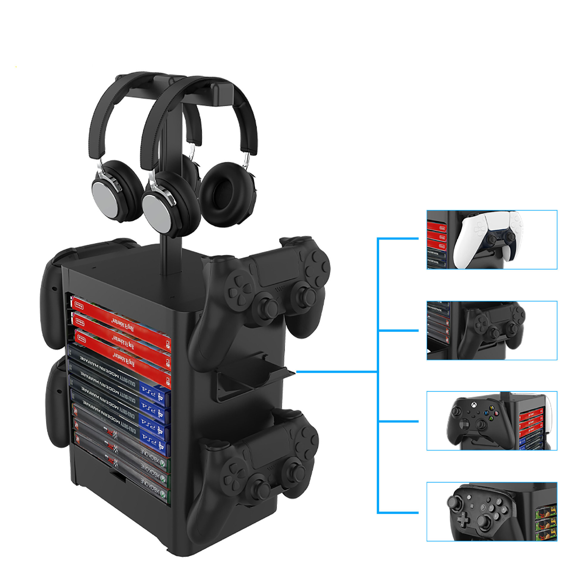 The bottom drawer is designed to hold silicone cases, chargers, game cards and other small accessories
