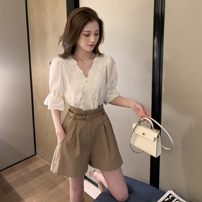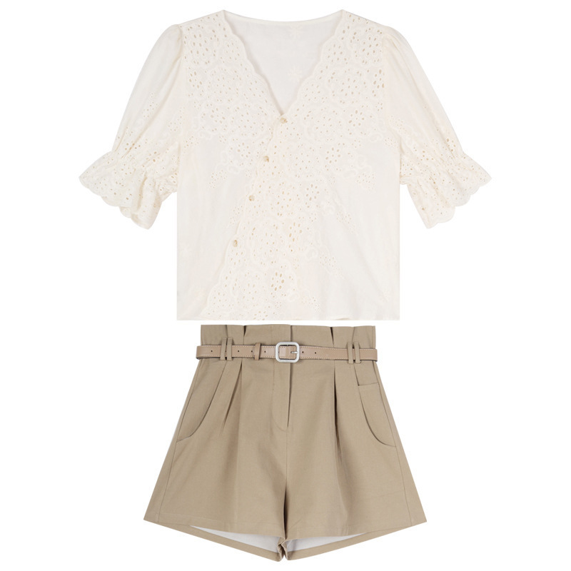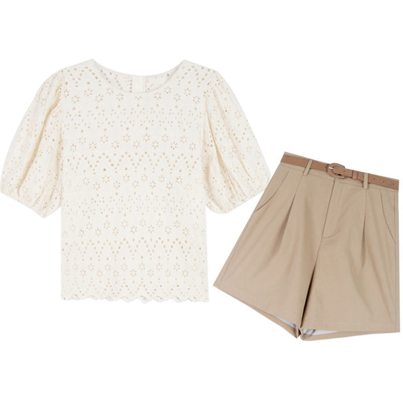 Can Salt Can Be Sweet Hollow Top Lace Shorts Two-piece Suit