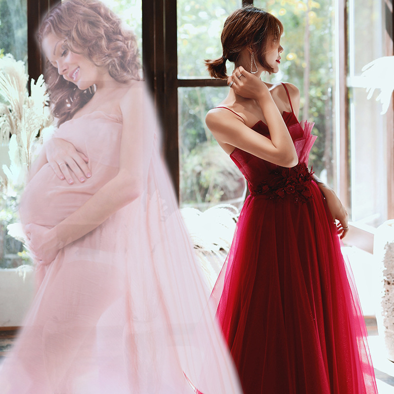Color: burgundy mid-waist long, burgundy pregnant woman high-waist long, burgundy pregnant woman high-waist long, black long, black long.