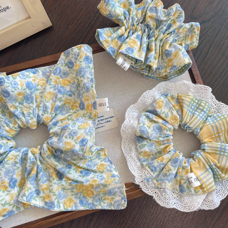 Color: Canary Rose double stitching hair ring, Canary rose square scarf, Canary Rose double stitching small waist