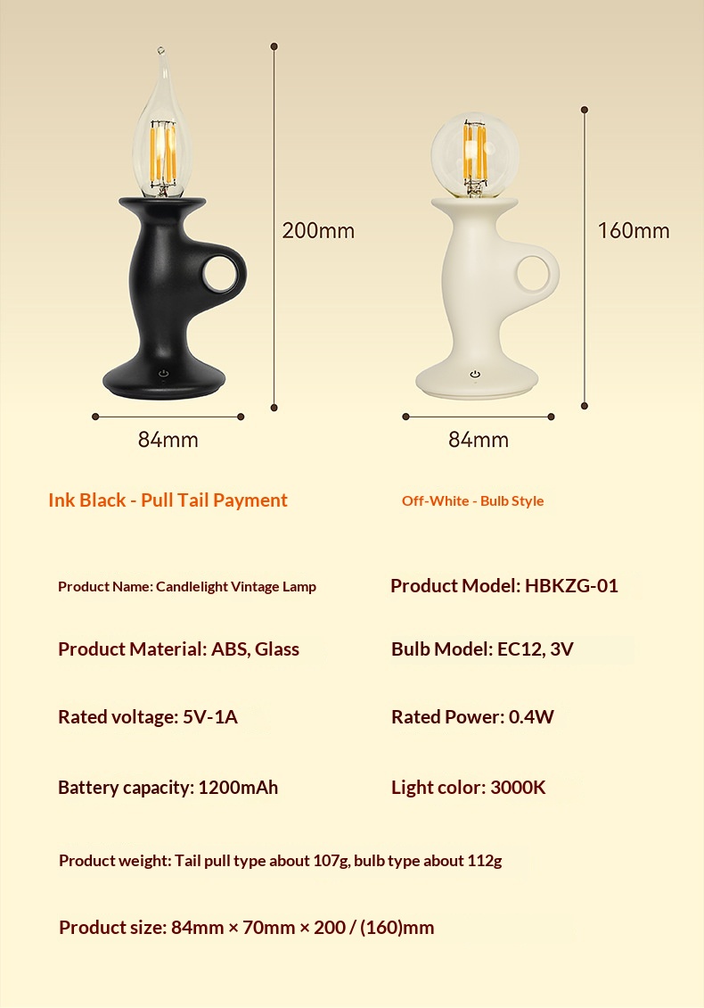 Light Color: Off-white bulb style, jet-black tailpull style