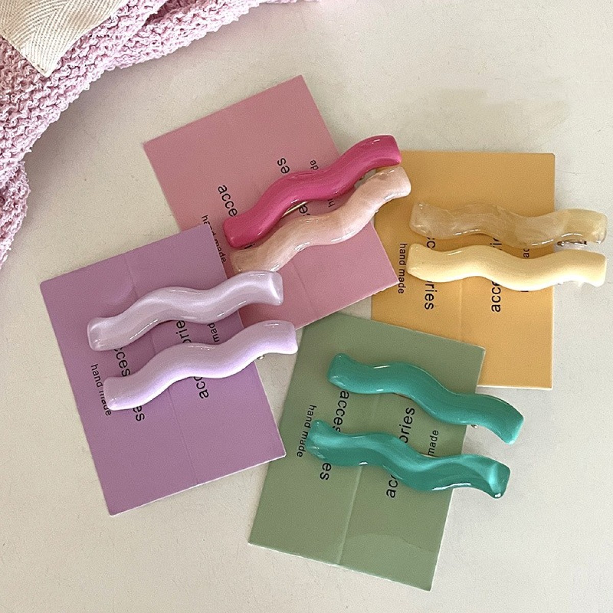 Color: 1# blue and white wave barrettes, 2# Green Wave barrettes, 3# yellow texture wave barrettes, 4# rose red and white wave barrettes, 5# Purple Wave barrettes