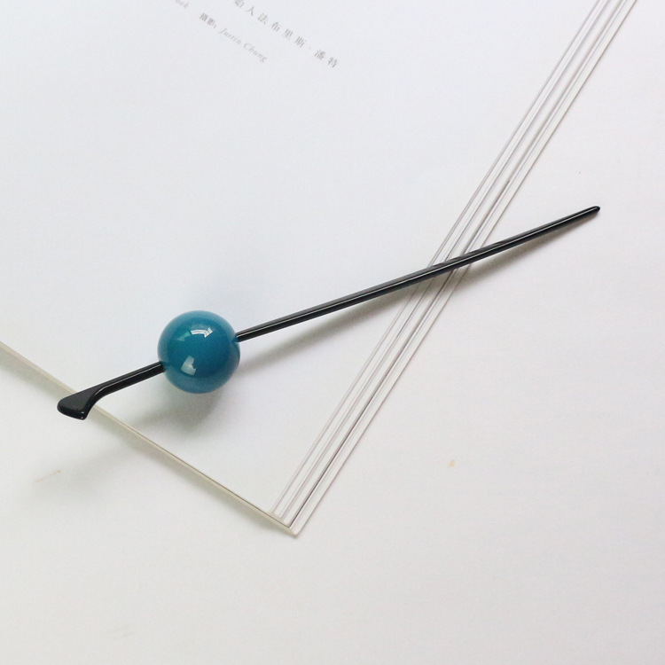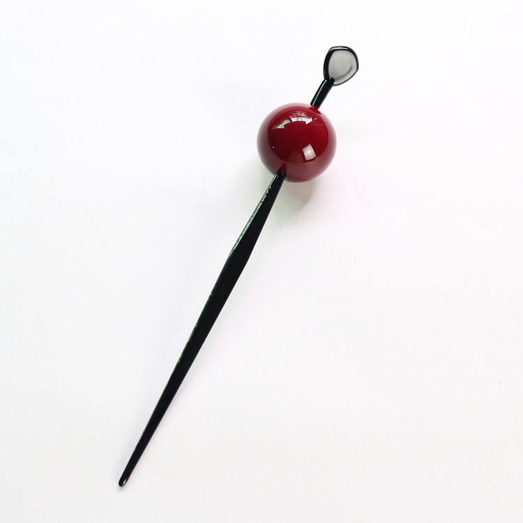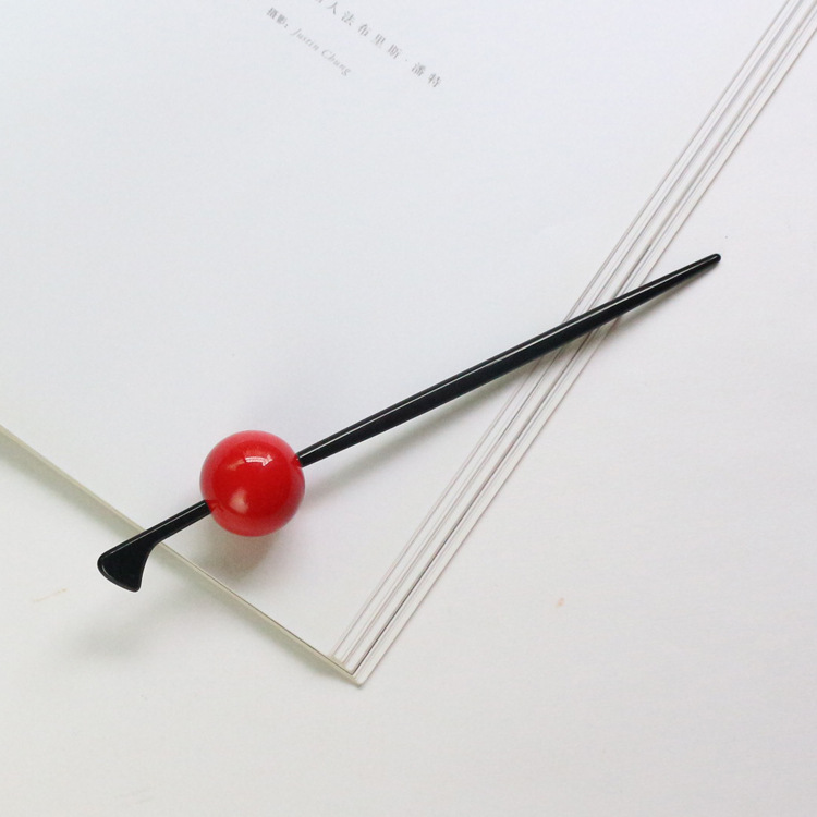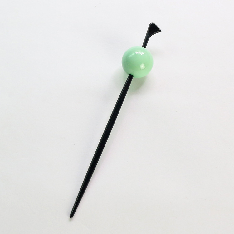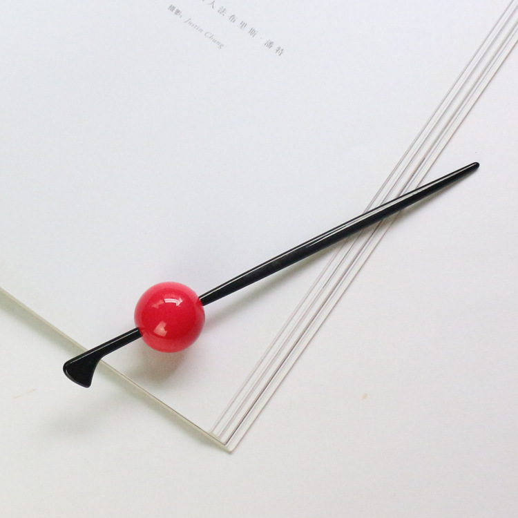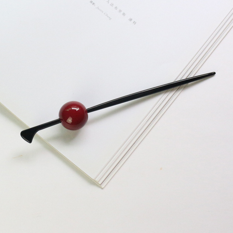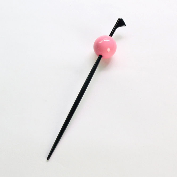 4 Use your left hand to pull away the hair on the left to make a gap that is sufficient for the thickness and length of the hairpin, and then insert the hairpin horizontally from right to left in the hair group. Meimei's hairstyle is done!
