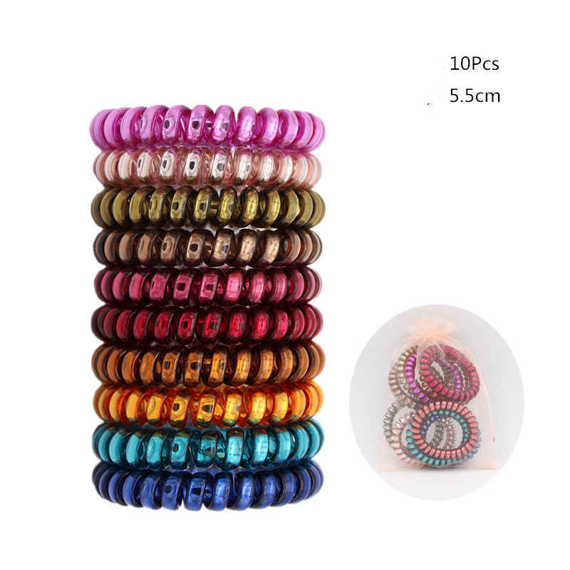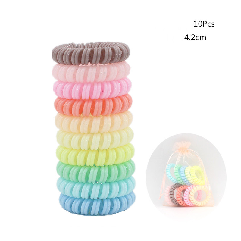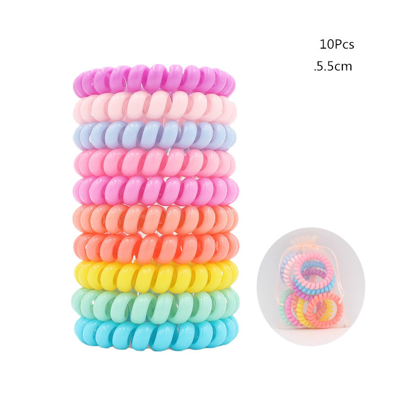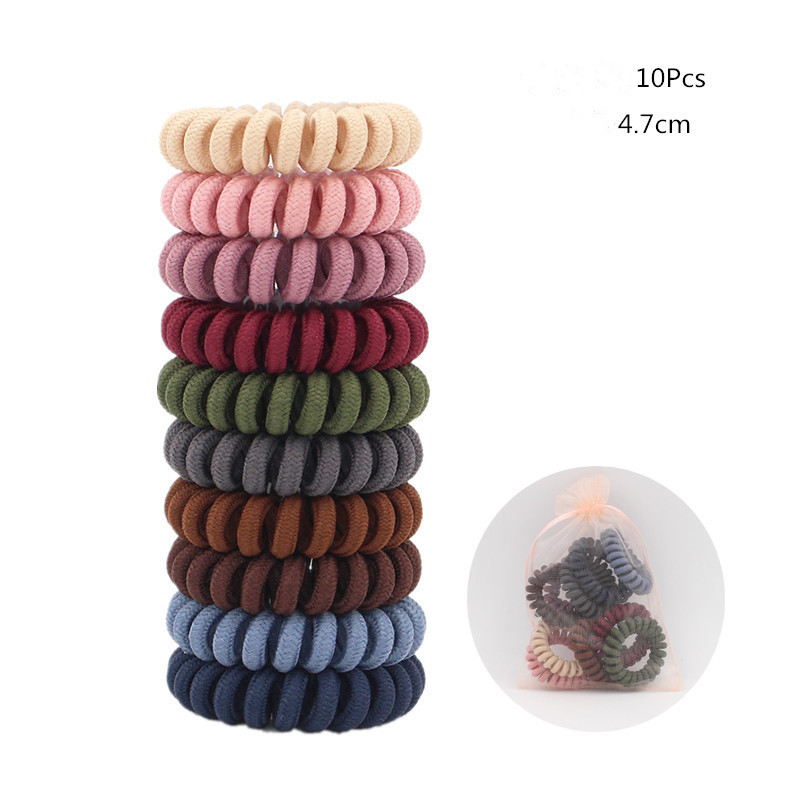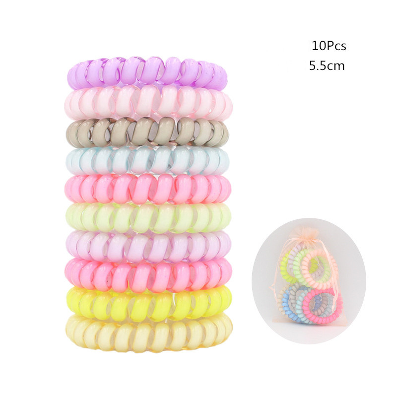 Candy-colored Large Telephone Cord Hair Tie 10 Cans, High Elasticity, Not Easy To Break, Simple Restraint Hair Tie