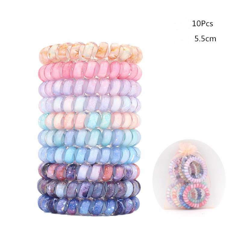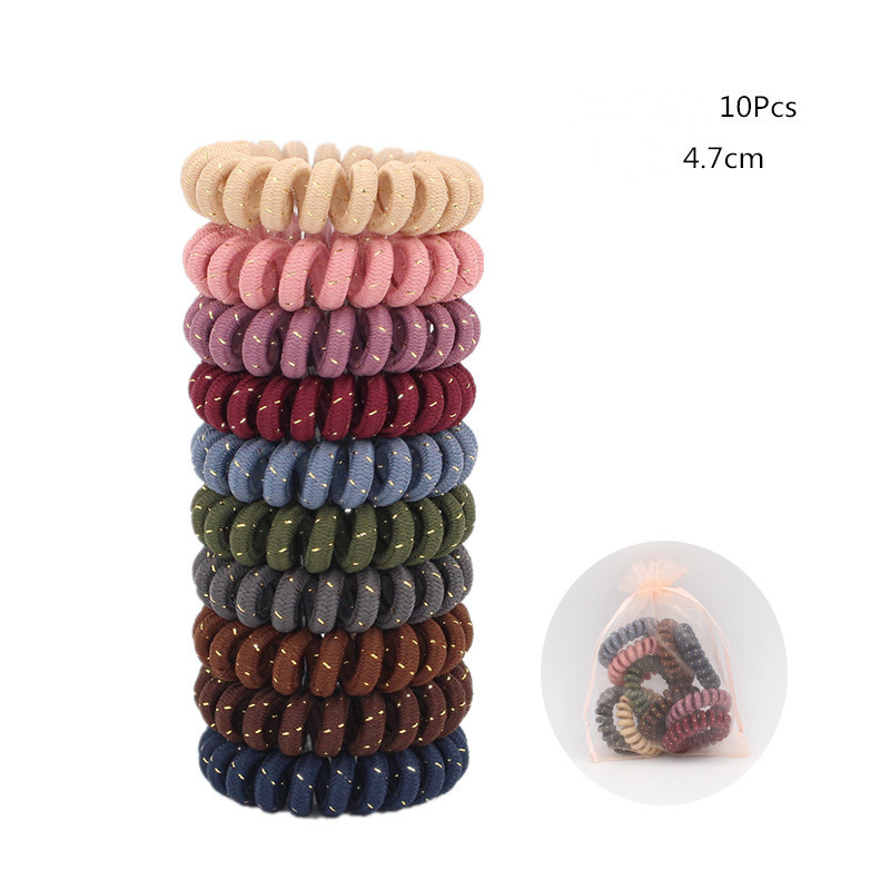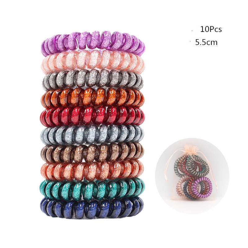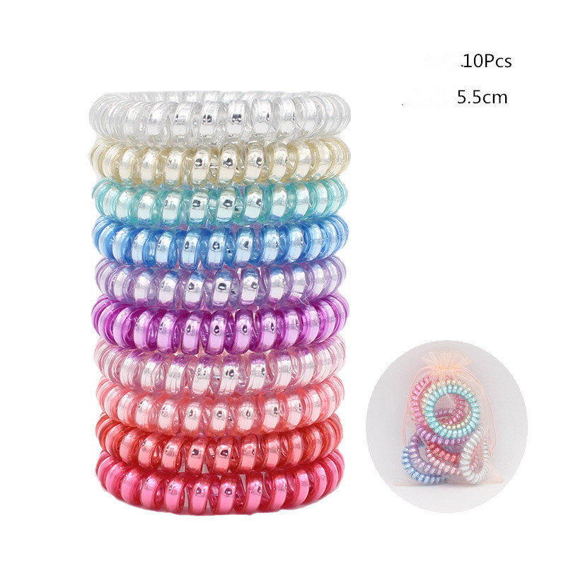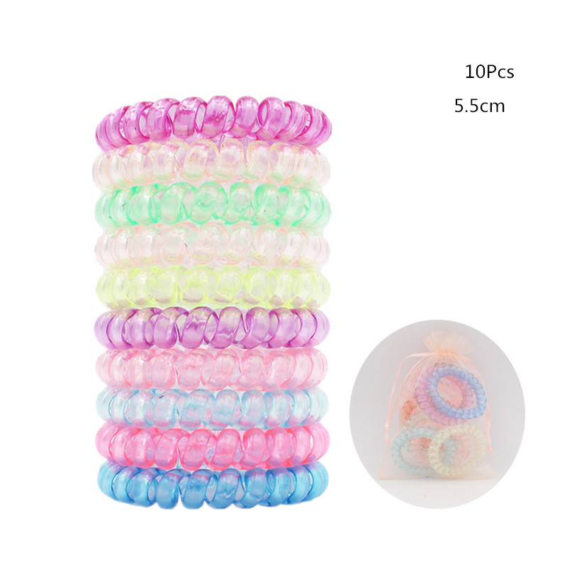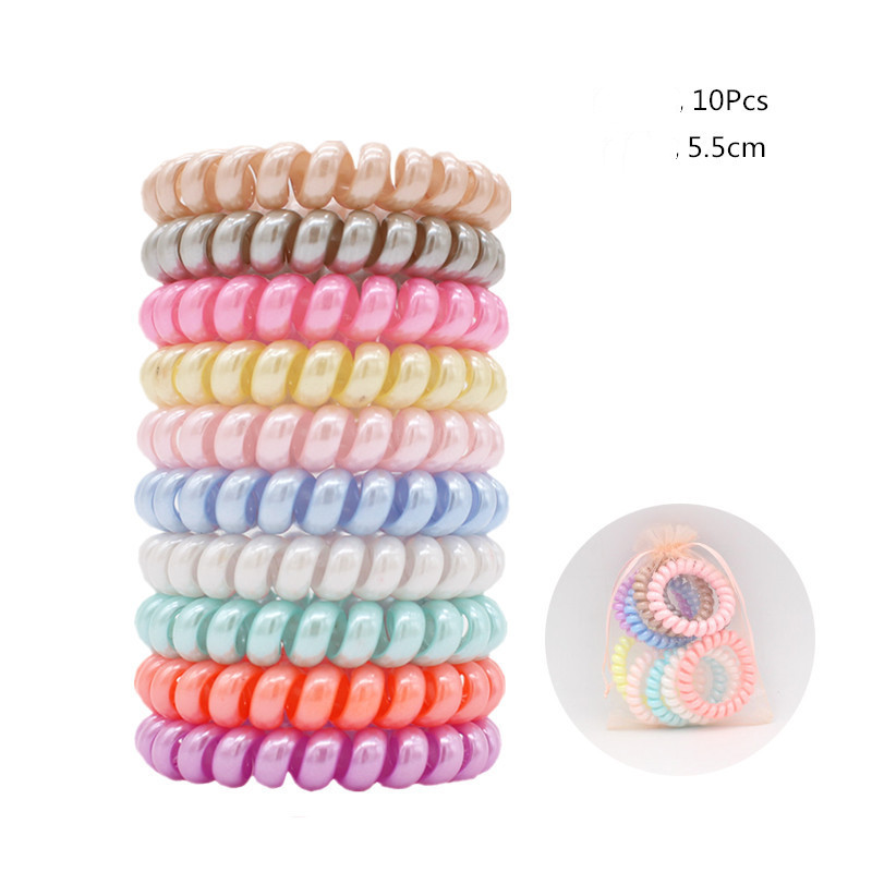 Candy-colored Large Telephone Cord Hair Tie 10 Cans, High Elasticity, Not Easy To Break, Simple Restraint Hair Tie