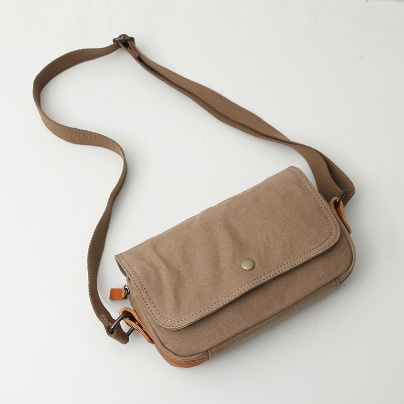 Canvas With Leather Small Single Shoulder Crossbody Bag Female