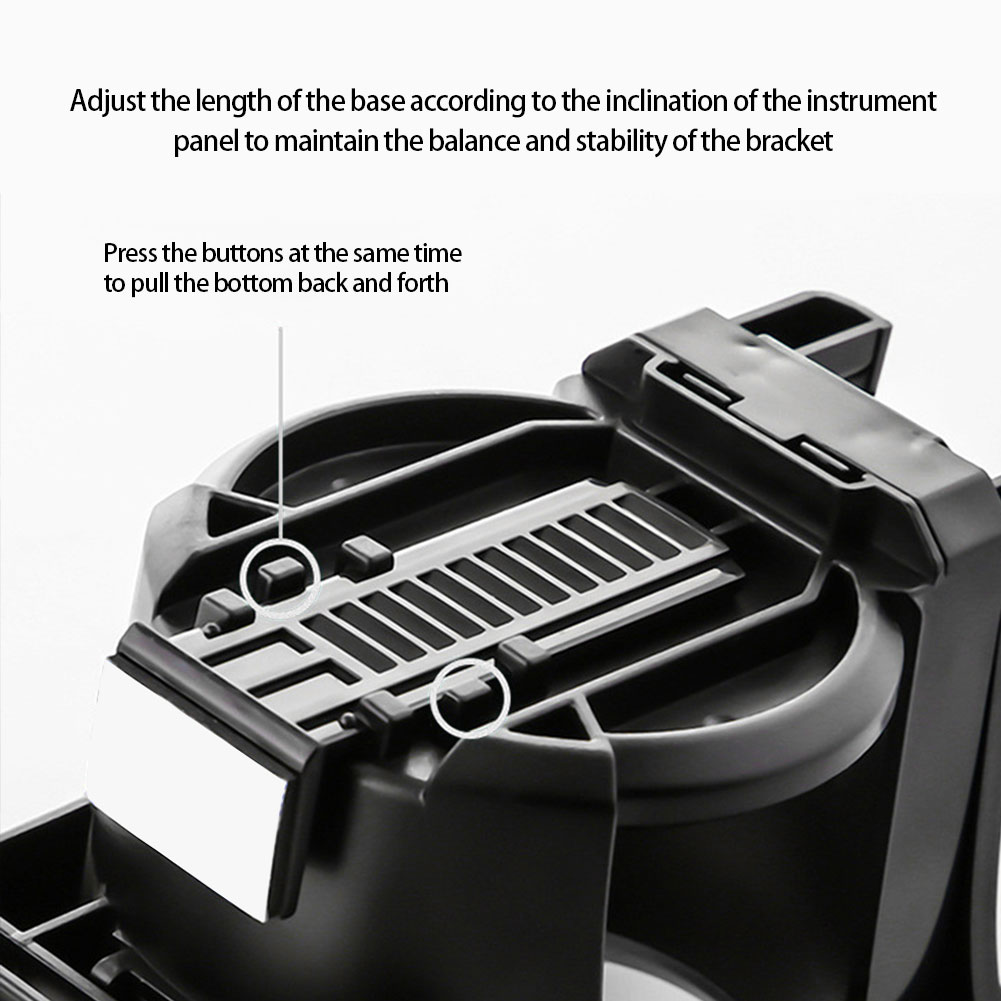 Adjustable base: adjust the length of the base according to the inclination of the dashboard to keep the stand balanced and stable